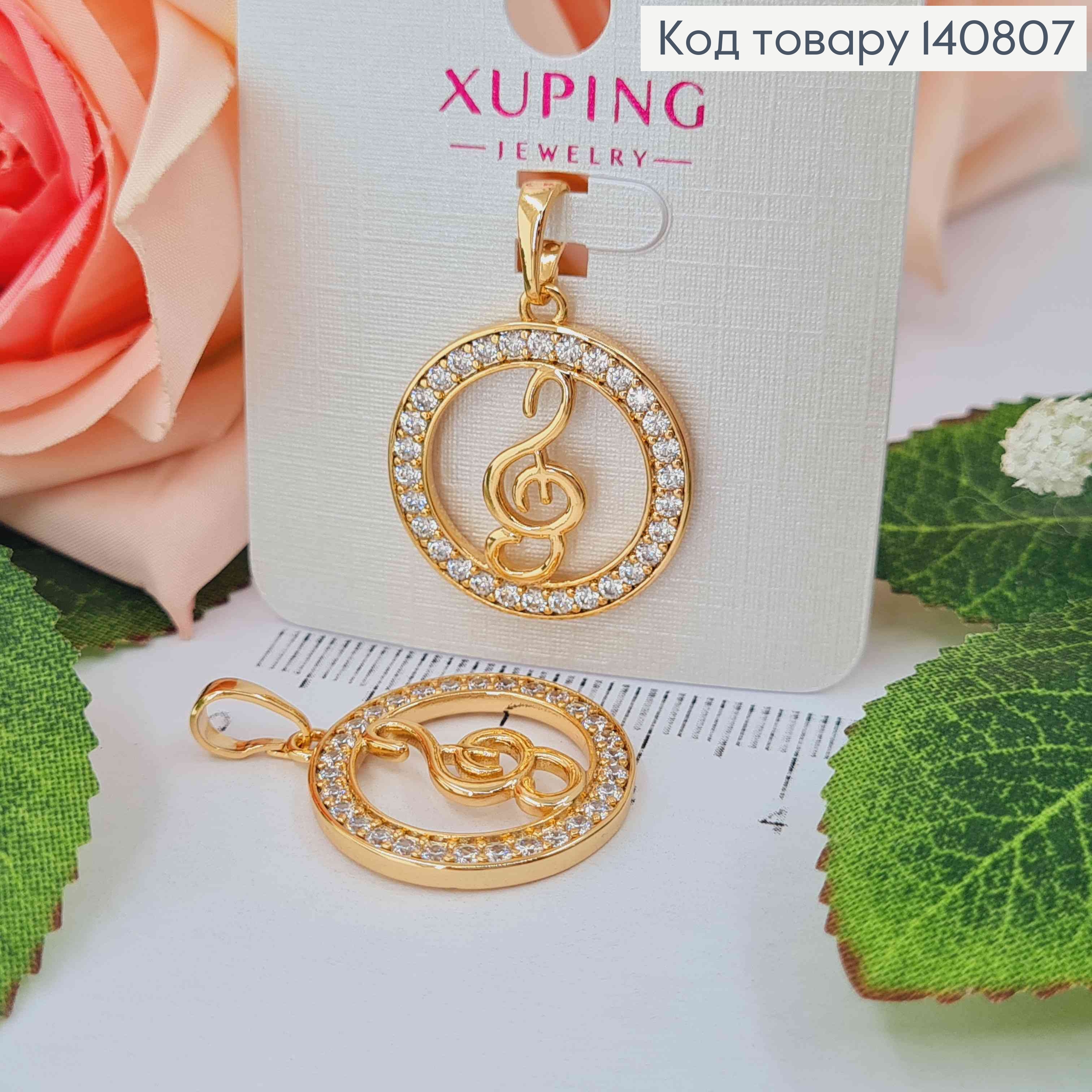 Кулон, "Скрипический ключ" в круглой оправе из камешков, 2 см, Xuping 18K
