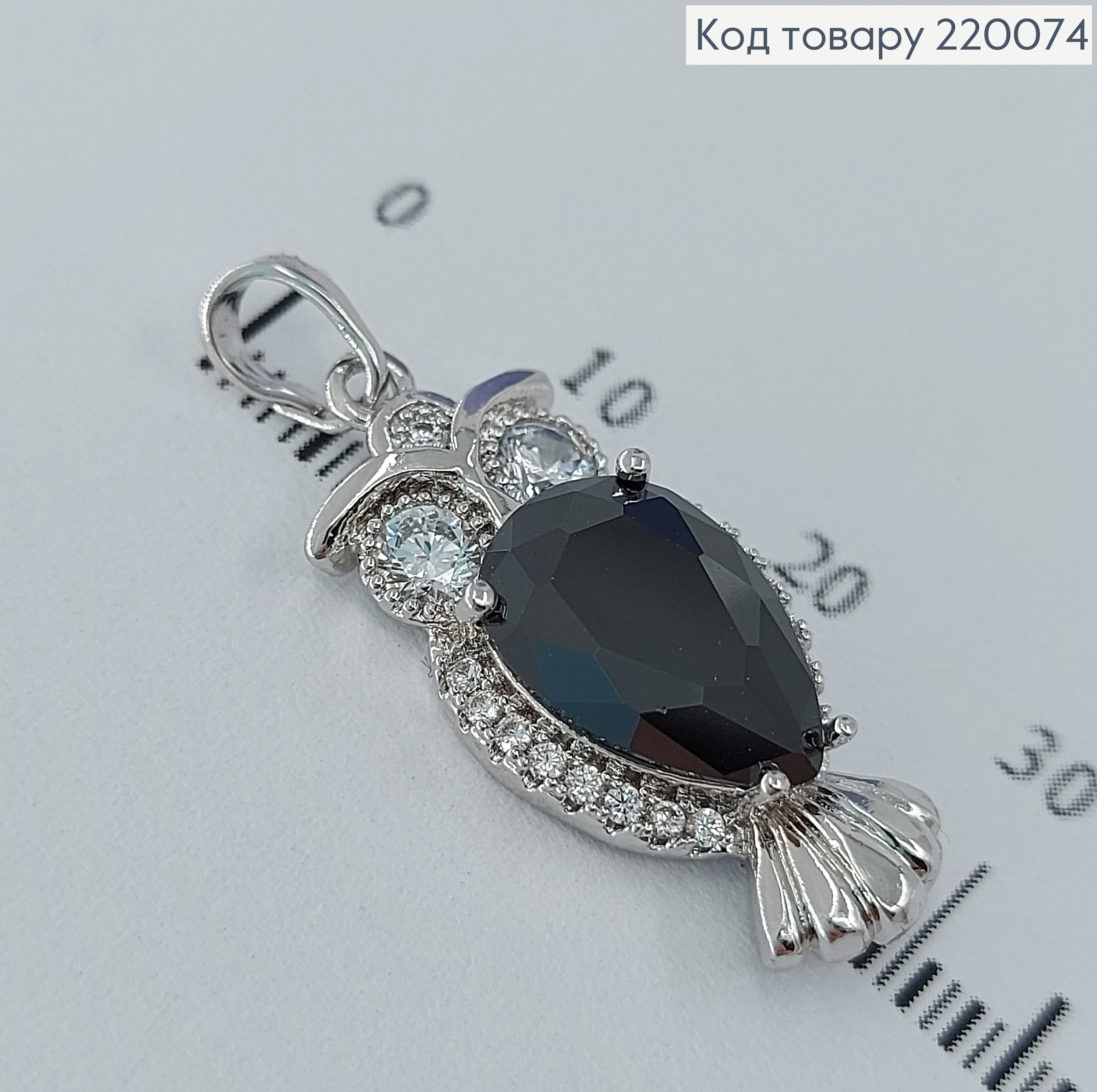 Кулон сова с большим черным камнем родированое медицинское золото Xuping 18K