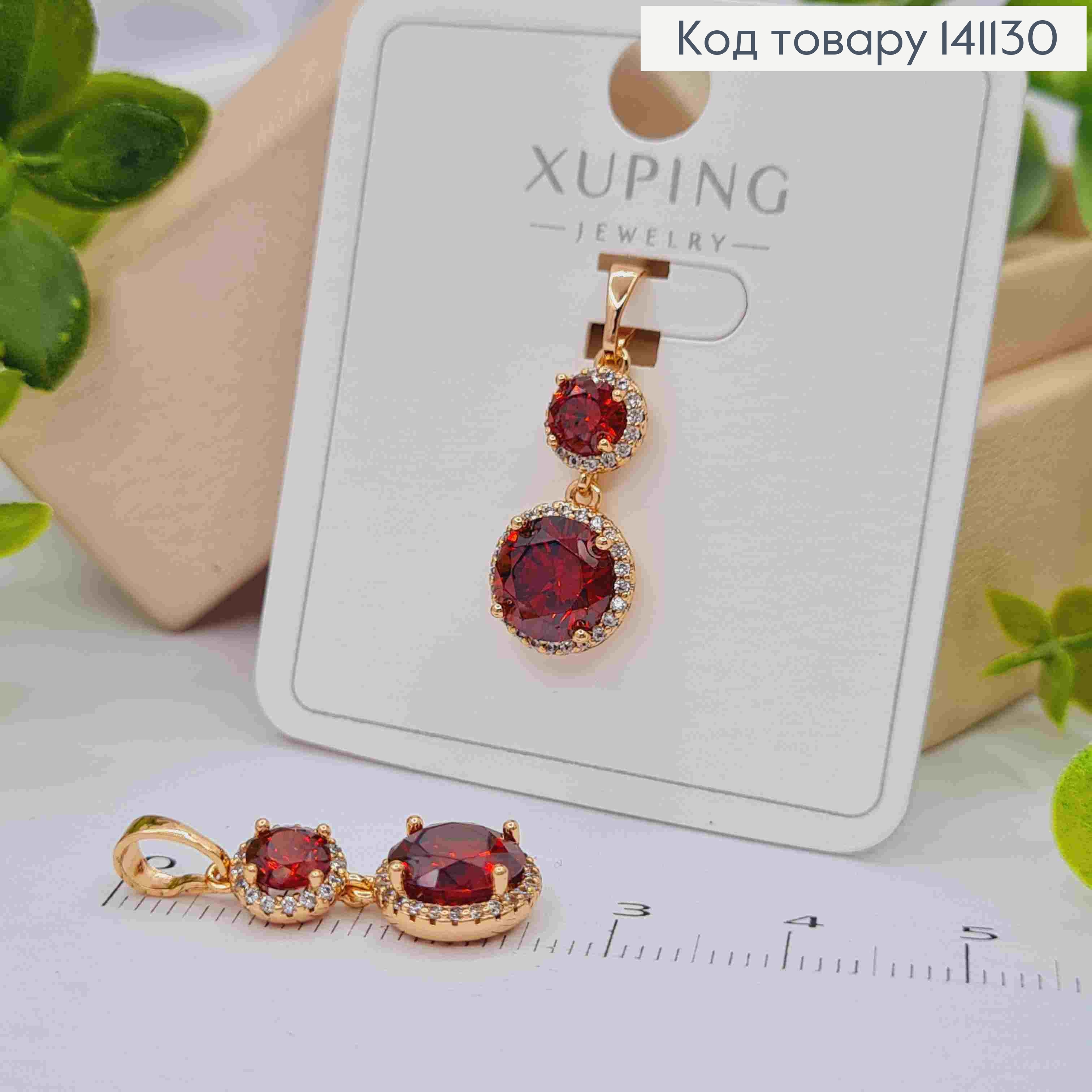 Кулон с Двумя Красными камешками, размер 2см, Xuping 18K