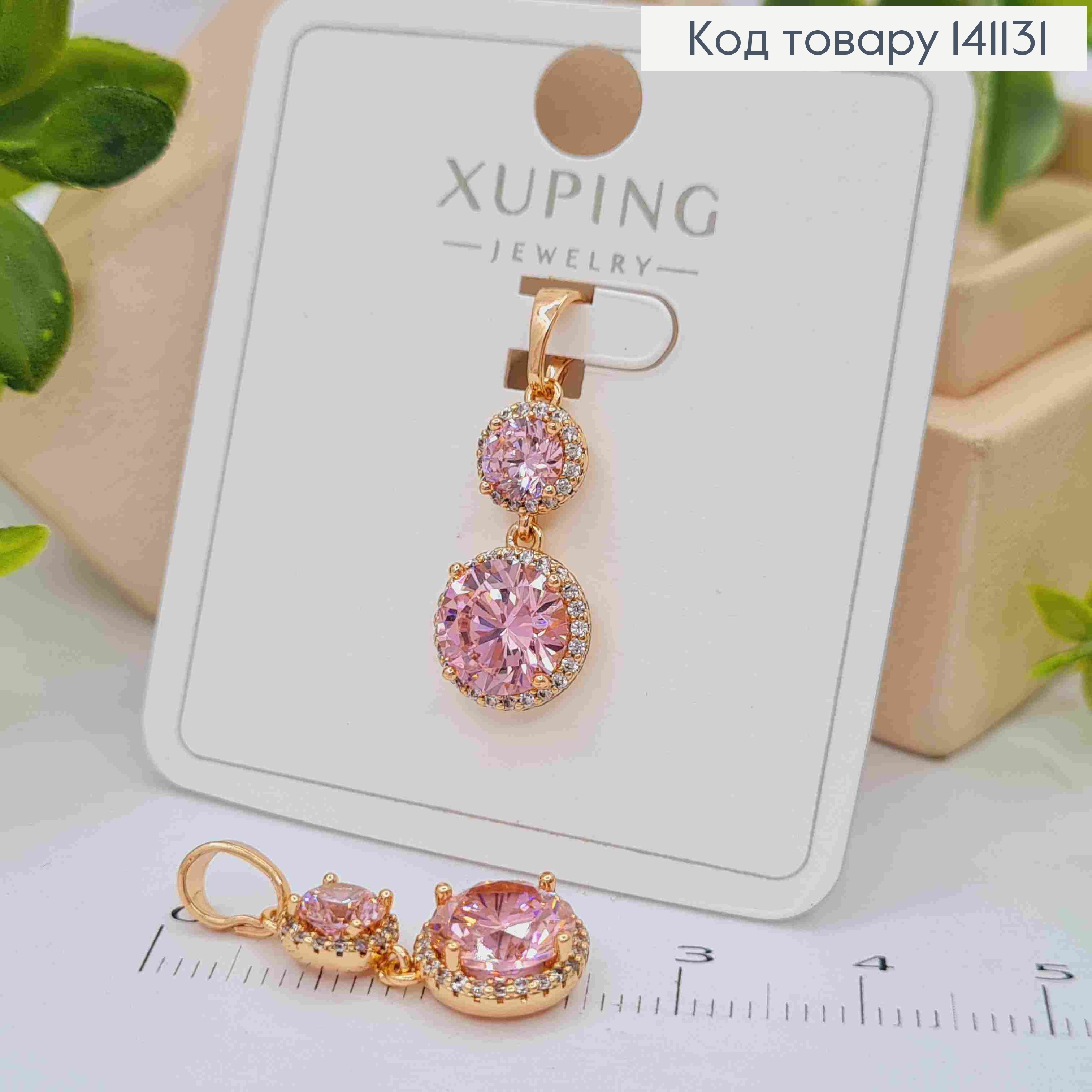 Кулон с Двумя Розовыми камешками, размер 2см, Xuping 18K