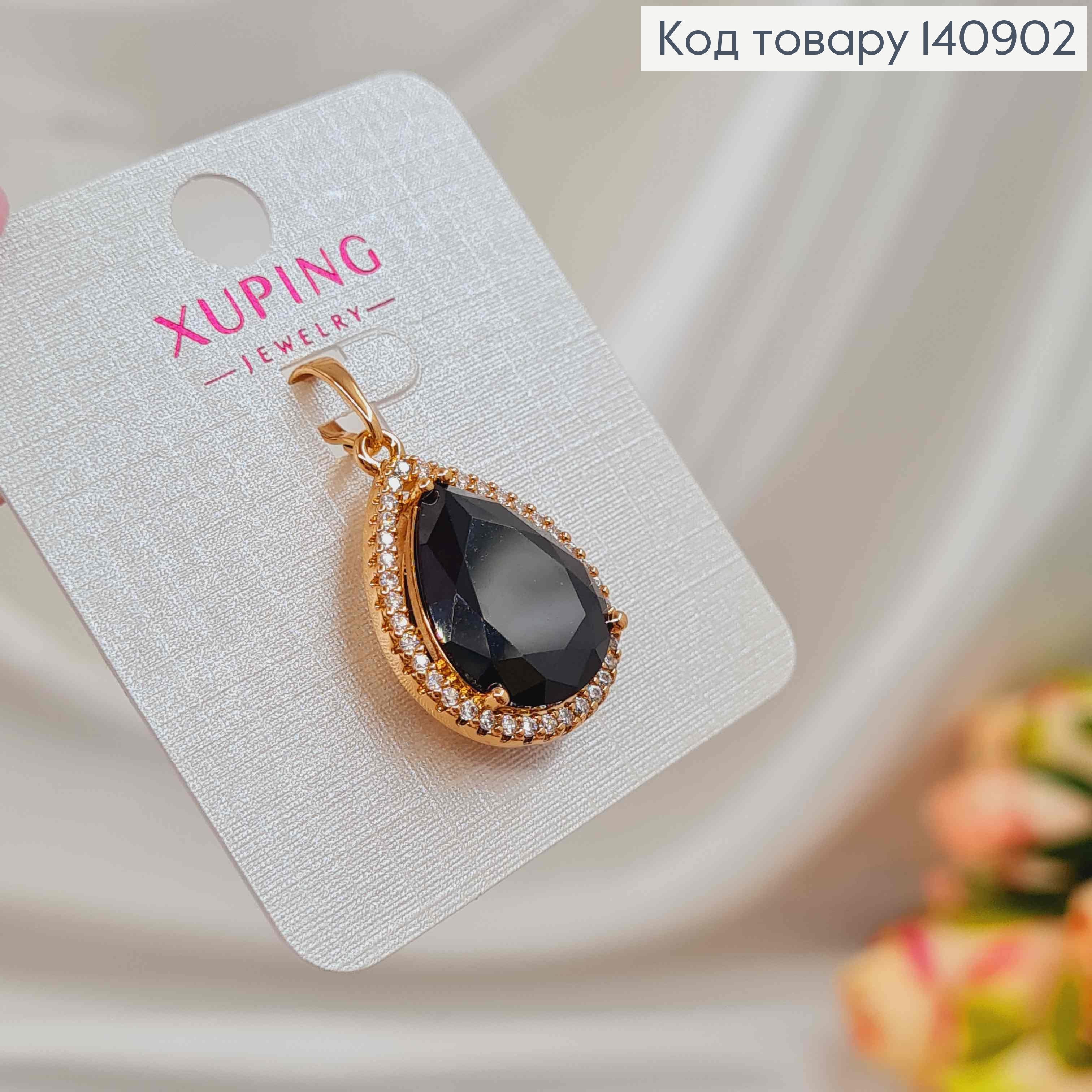Кулон с большим Черным камешком в форме капельки, 2,5*1,5см, Xuping 18K