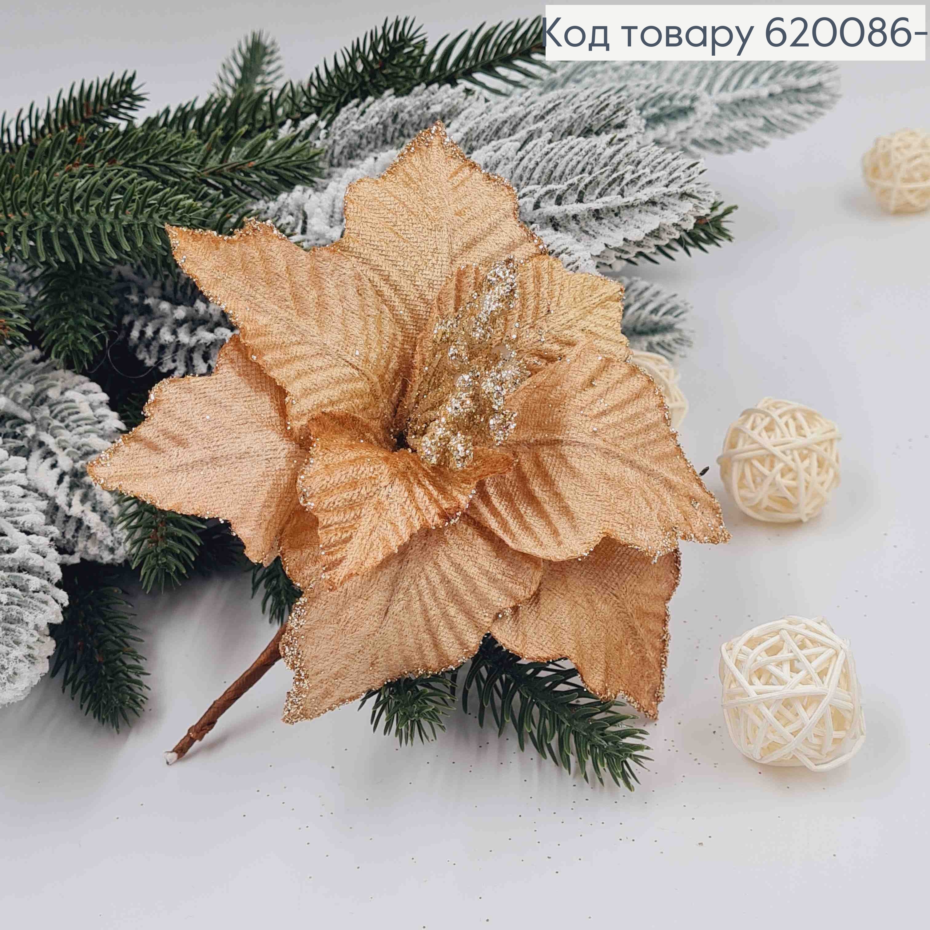 "Рождественник", цветок Пуансетия ЗОЛОТАЯ+БЛЕСК, бархатная, диам. 20см на металл., дл.22см 620767 фото