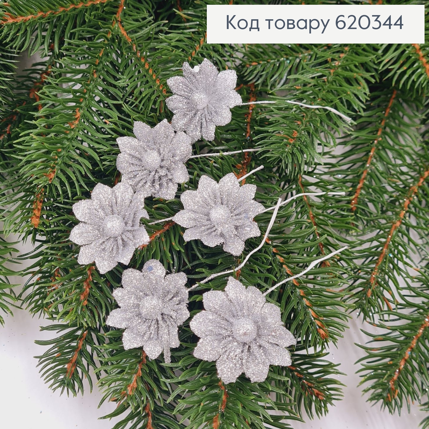 Цветок Серебро блеск, пучок 6шт, 8см