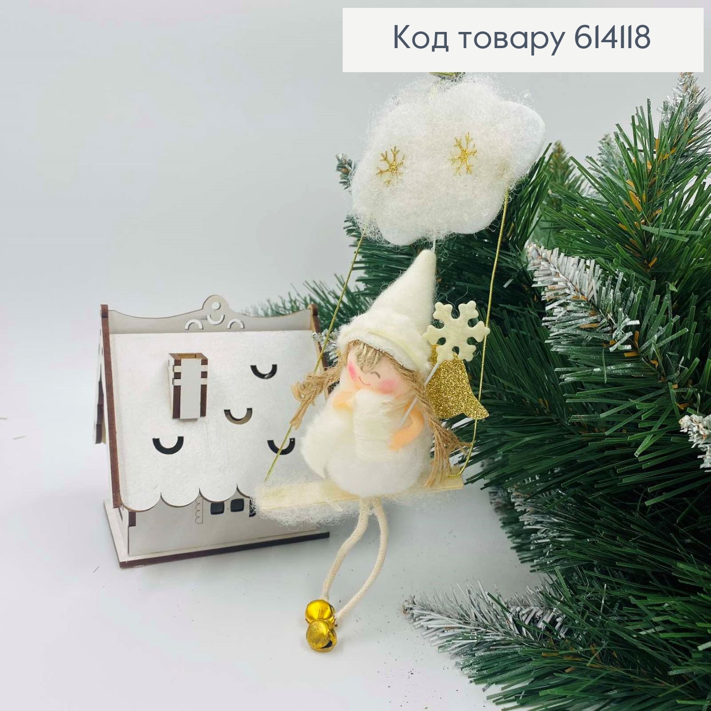Куколка Ангел на качели под облаком с погремушкой 24 см