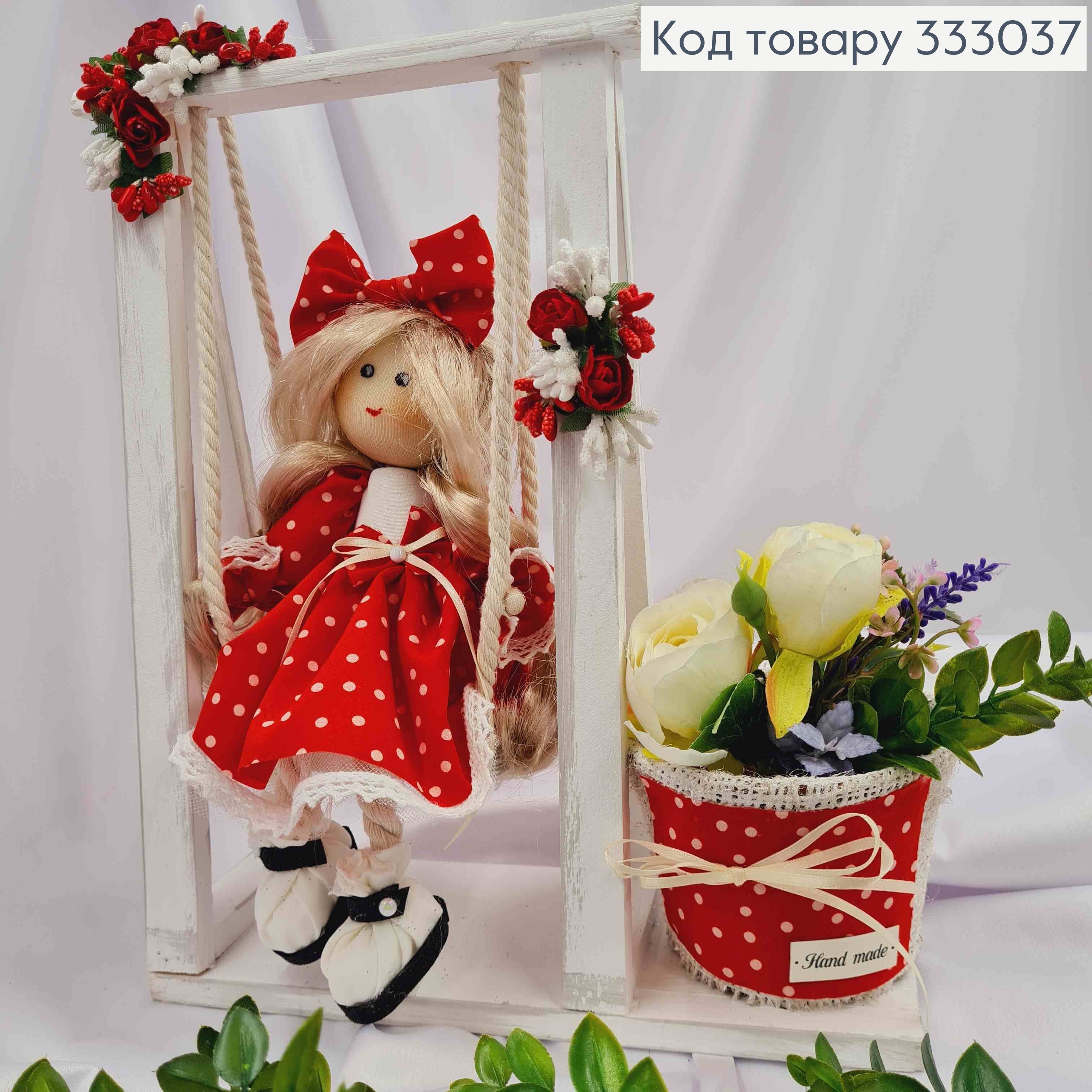 Кукла Девочка на качелях в Красном платье (32см), кашпо (11*8см), ручная работа, Украина.