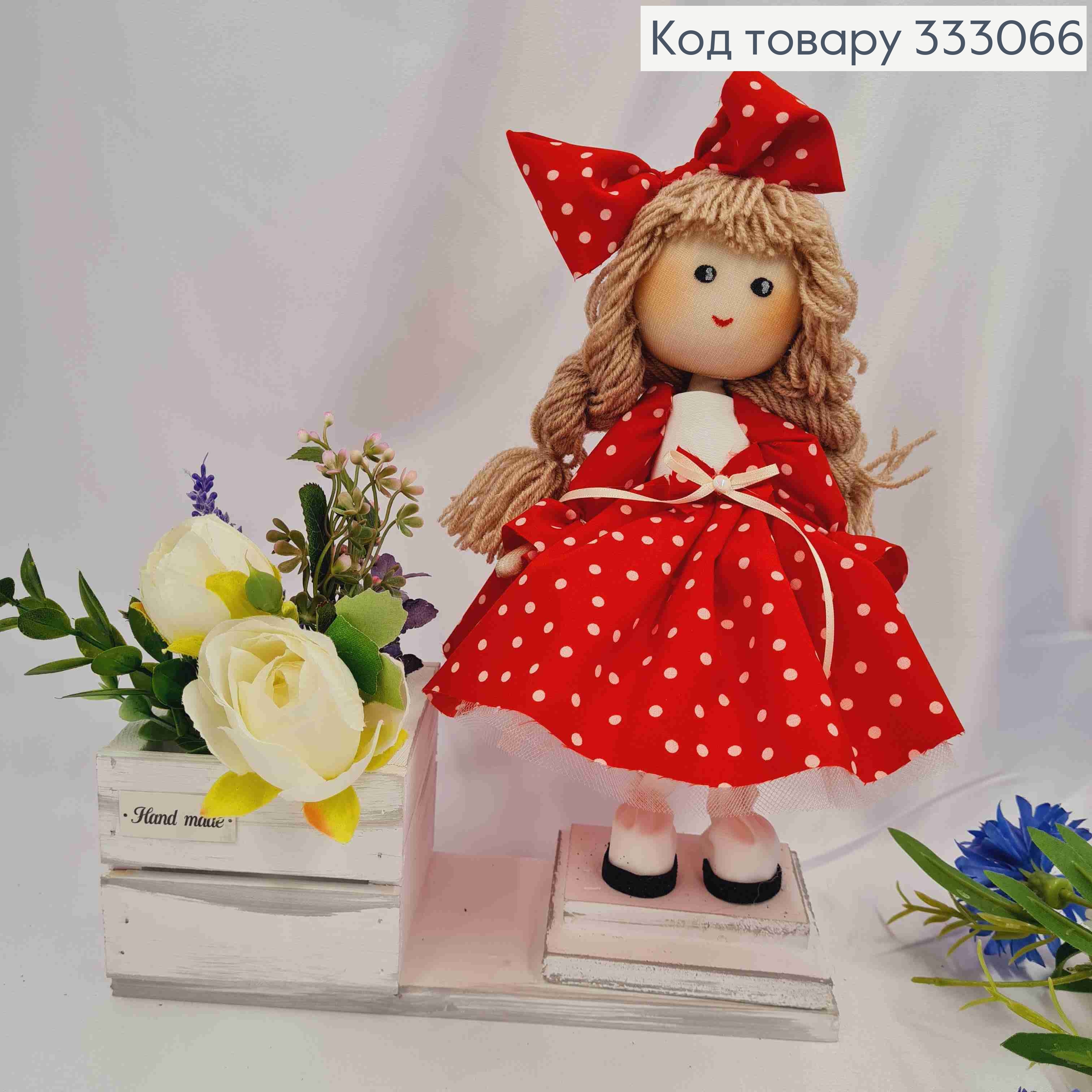Кукла Девочка в Красном платье в горошек (28см), кашпо (9*9см), ручная работа, Украина.