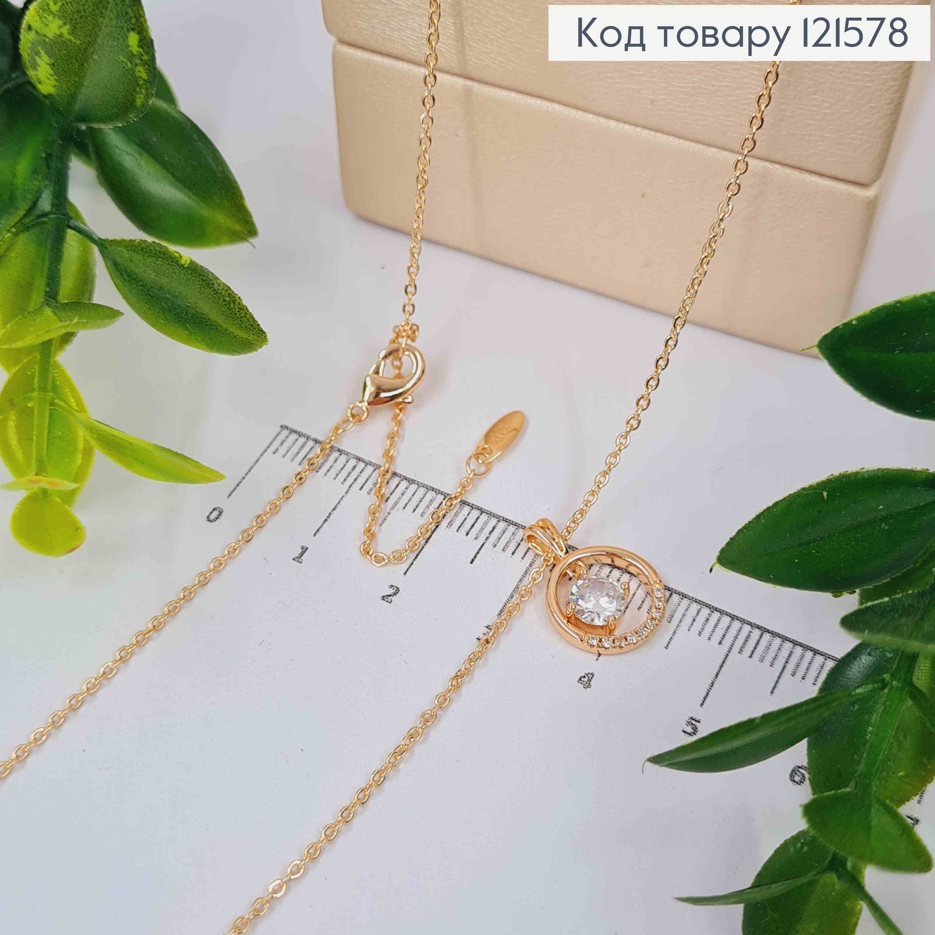 Цепочка КАКОРНОЕ плетение с подвеской Блестящий Камешок в кругу, длина 46+5см, Xuping 18K