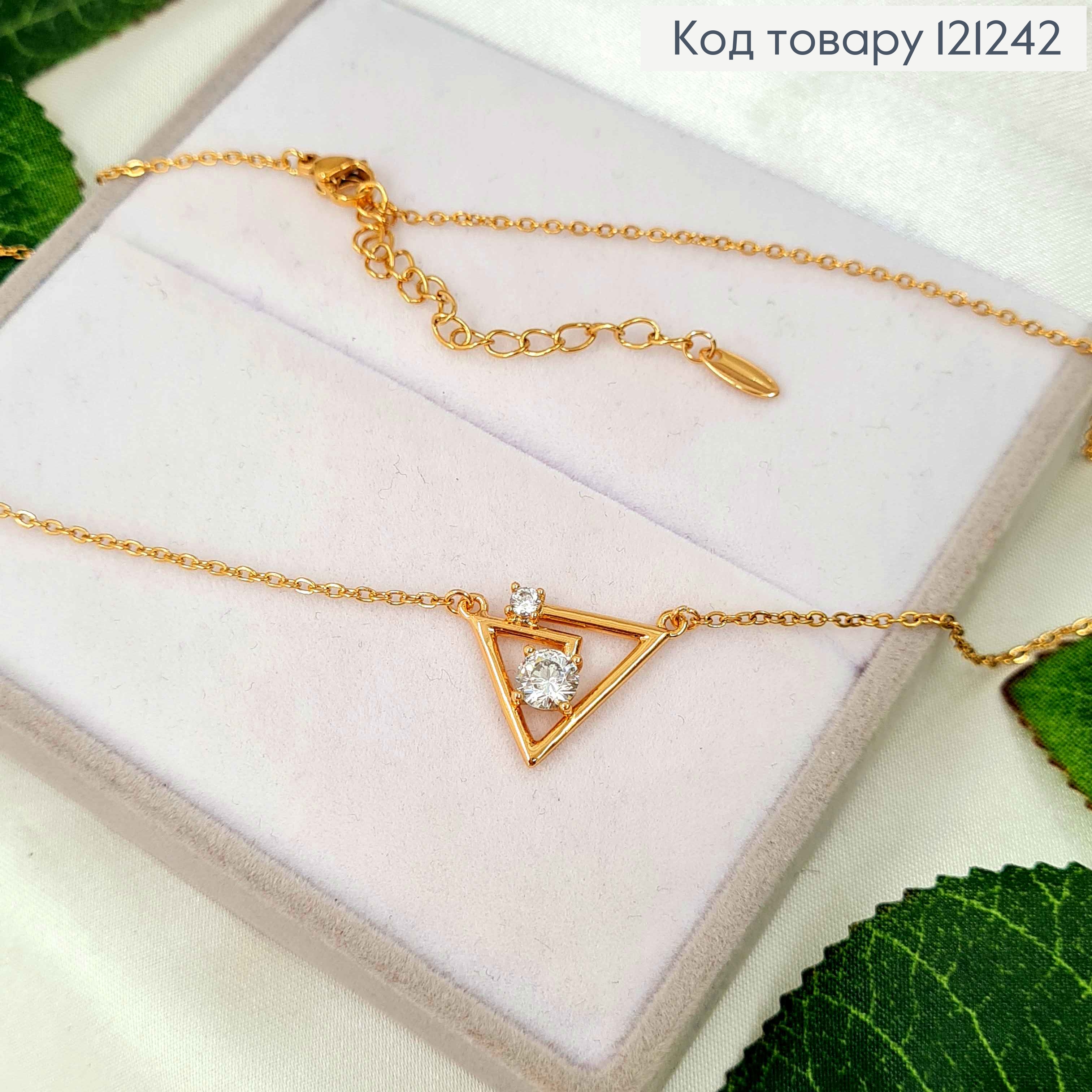 Цепочка якорное плетение с подвеской треугольником с двумя камешками, дл. 40+5см. Xuping 18K