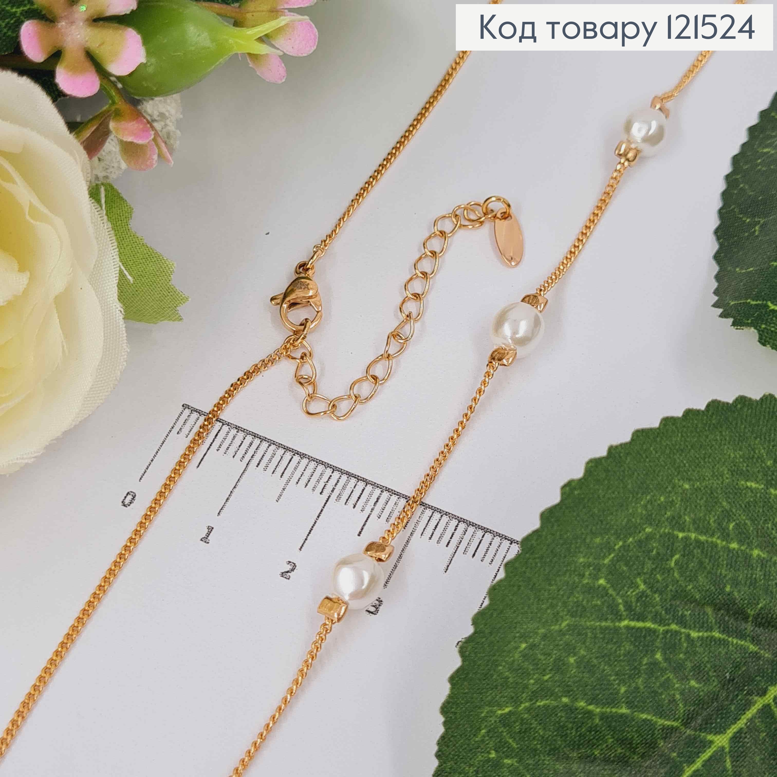 Цепочка Панцирное плетение, с перламутровыми бусинками, длина 45+5см, Xuping 18К