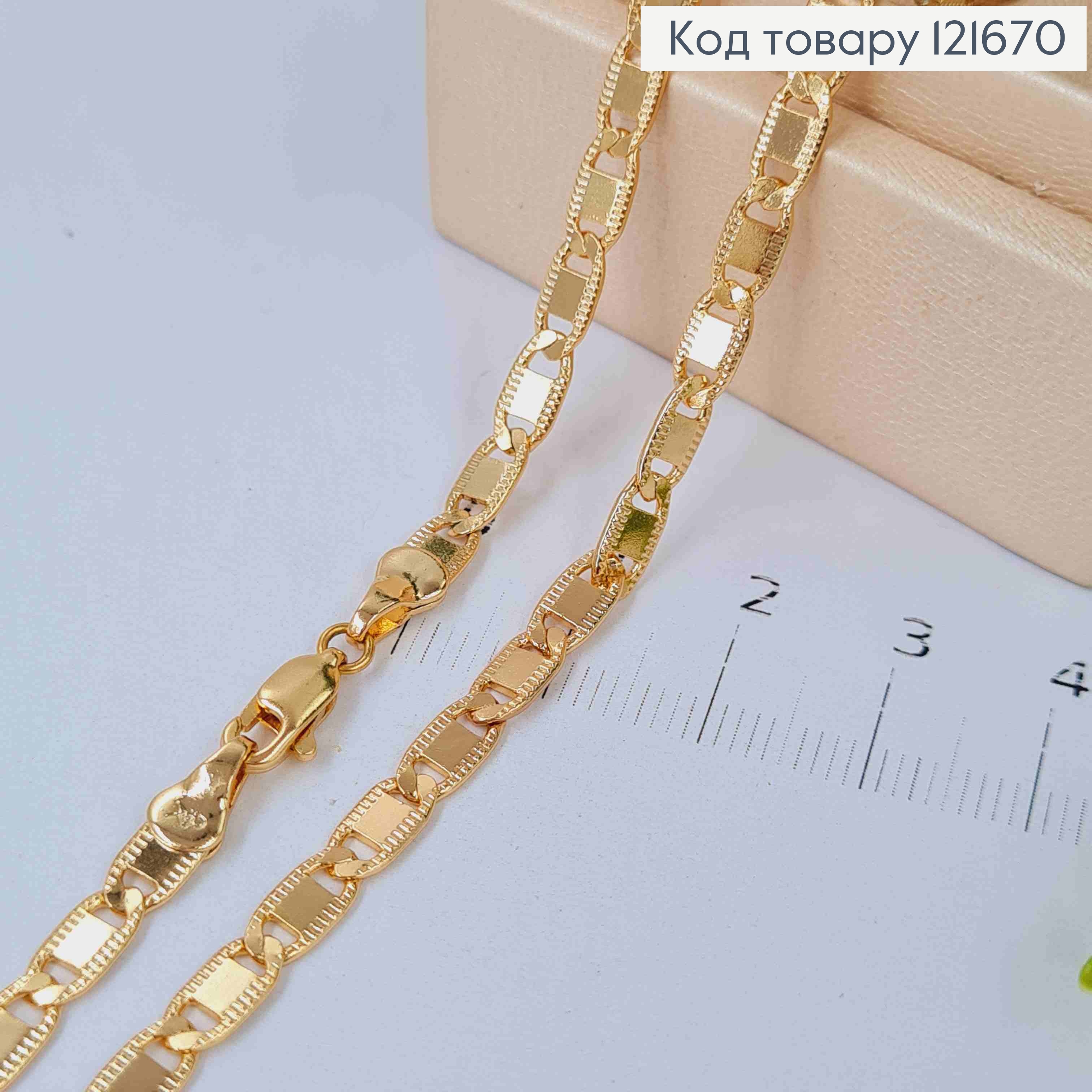 Цепочка плетения ОВАЛЬНЫМИ пластинками с тиснением по краям, ширина 4мм, длина 45см, Xuping 18K