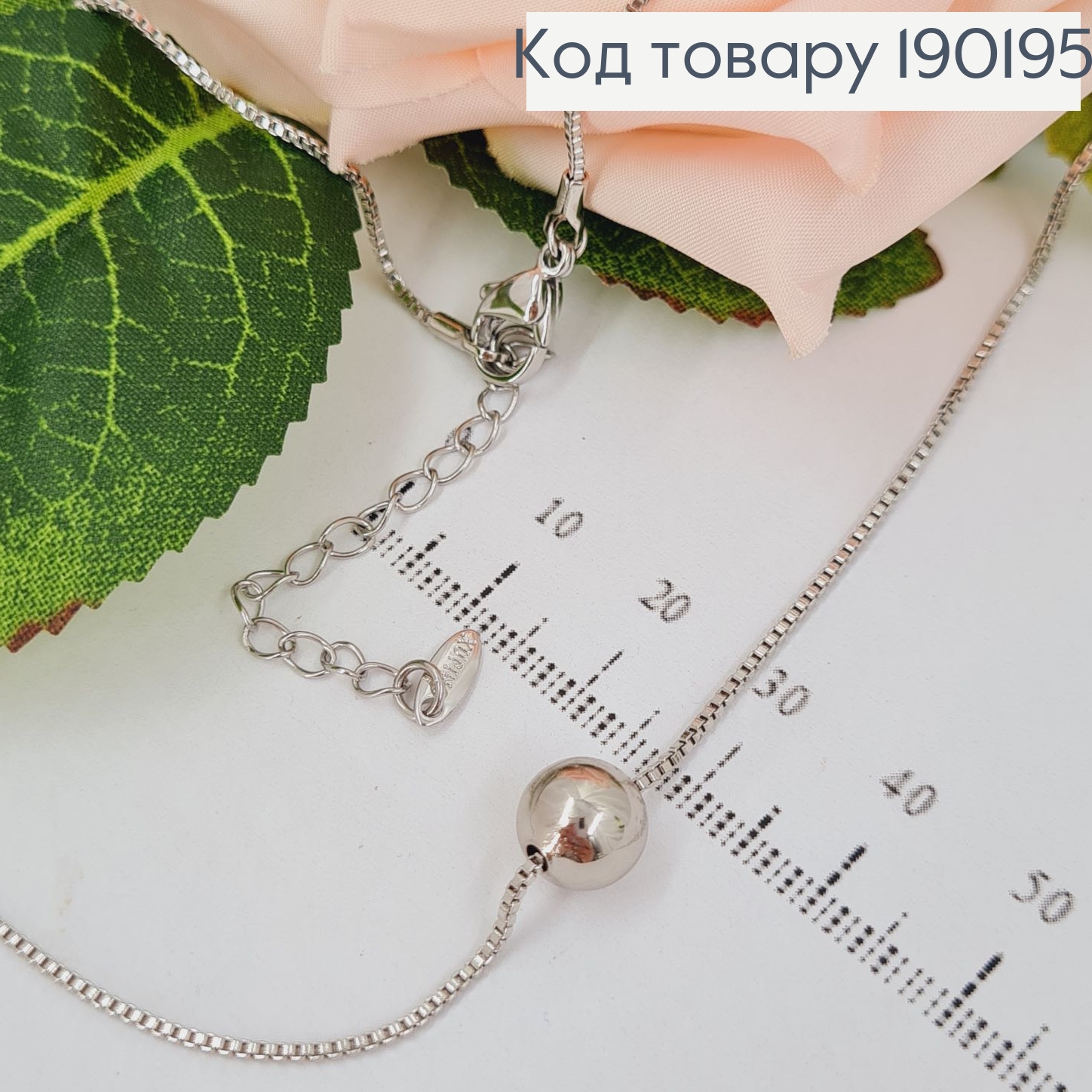 Цепочка родированая 1мм, длина 50+4см с кулончиком Шарик 0,8см, Xuping