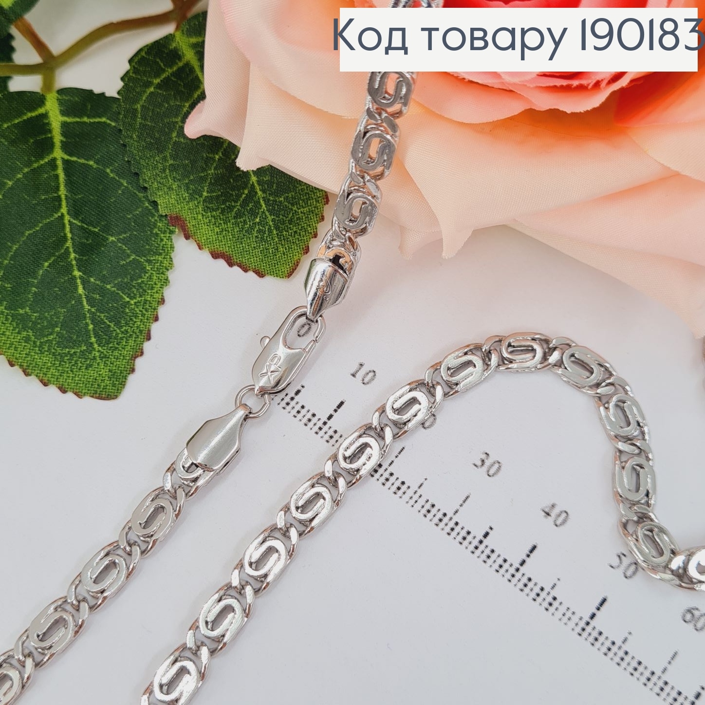 Цепочка родованная ПАНЦИРНОЕ ПЛЕТЕНИЕ с ПЛОСКИМИ пластинками с тиснением, длина 45см, Xuping 18K 190545 фото