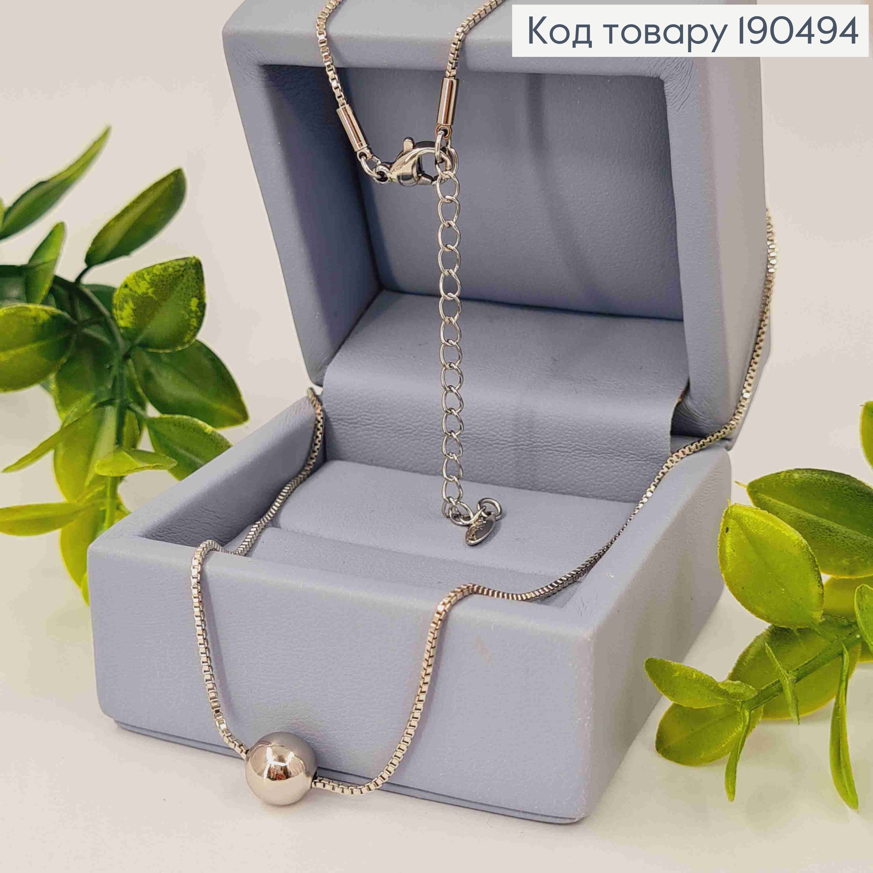 Цепочка родованная ЯКОРНОЕ плетение с бусинкой (8мм), длина 45+5см, Xuping