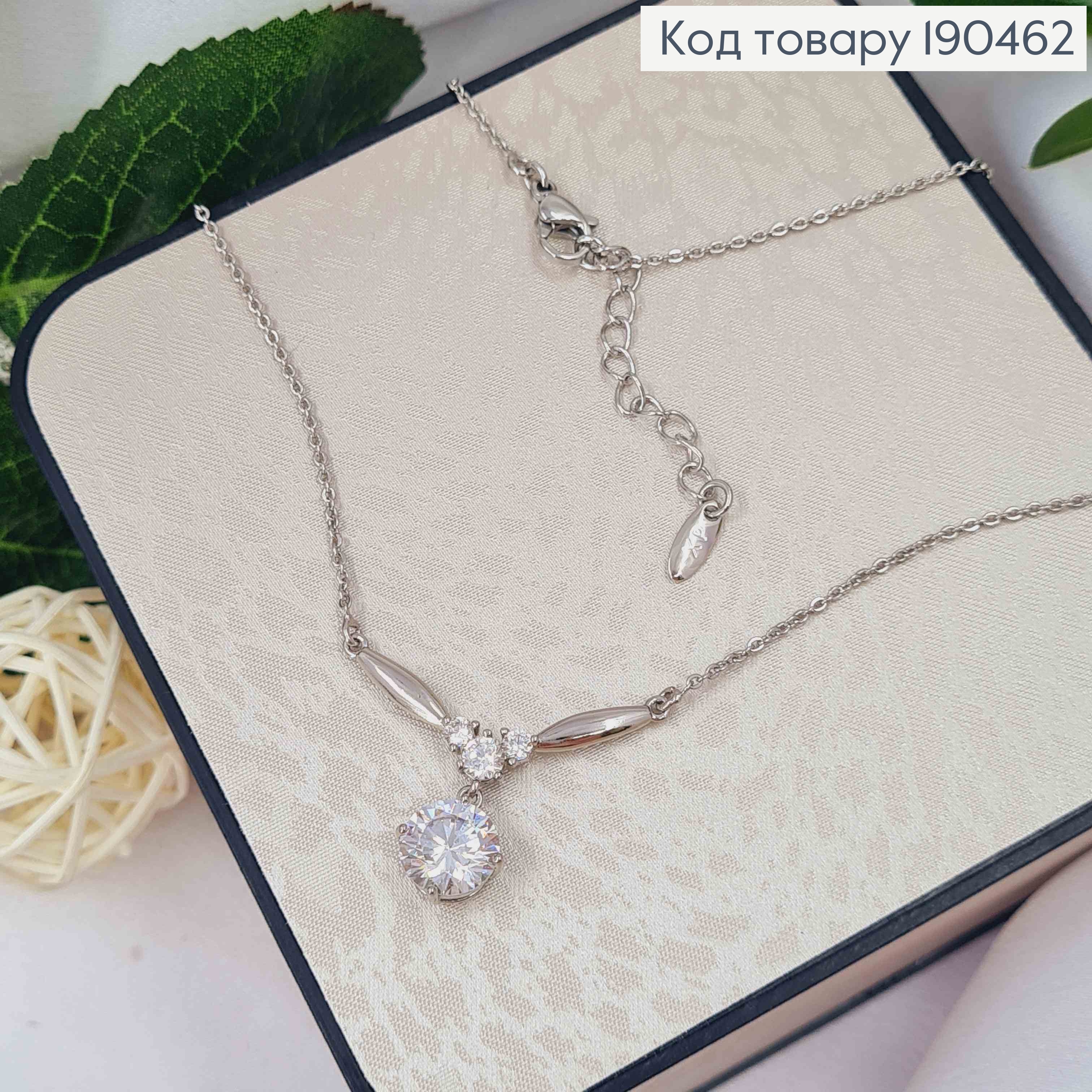 Цепочка родованная, КАЧЕСТВЕННОЕ плетение с подвеской Блестящий камень (9мм), длина 43+4см, Xuping
