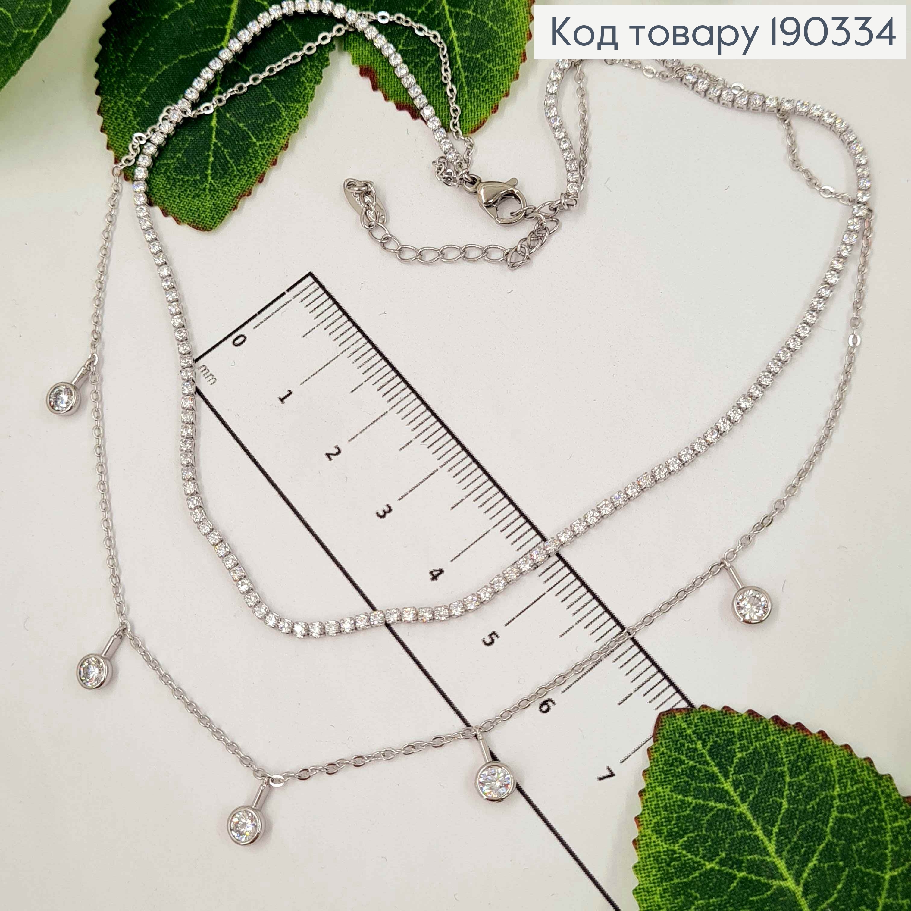 Цепочка родовая, комбинированное плетение, с цирконием, двойная, дл. 32,5+4см, Xuping