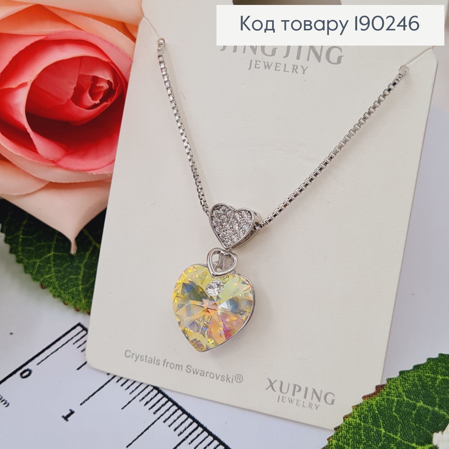 Цепочка родированая квадратное якорное с подвеской "Сердце" Кристалом от Swarovski, 40+5см, Xuping