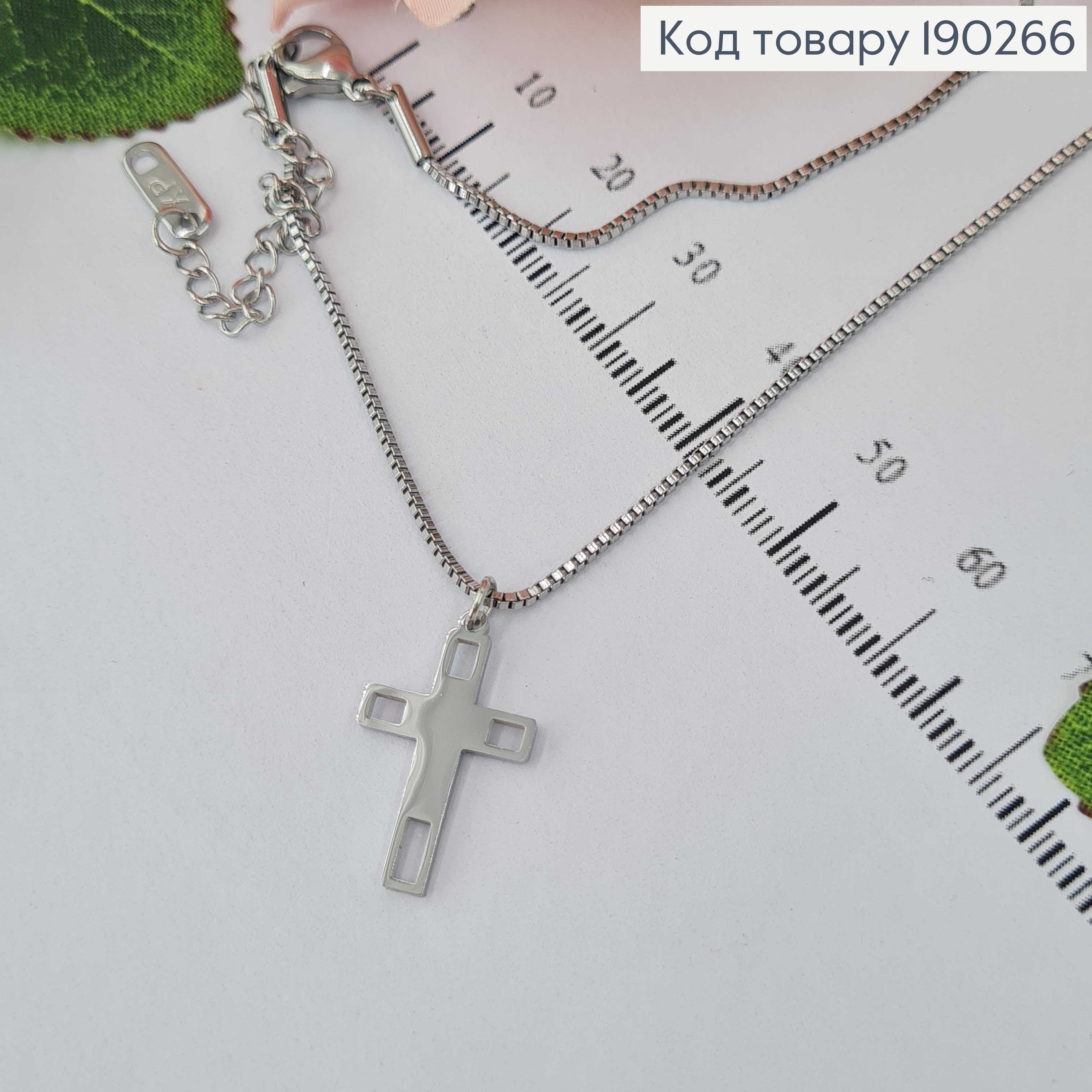Цепочка родированая, квадратное плетение с подвеской крестик 40+5см Xuping