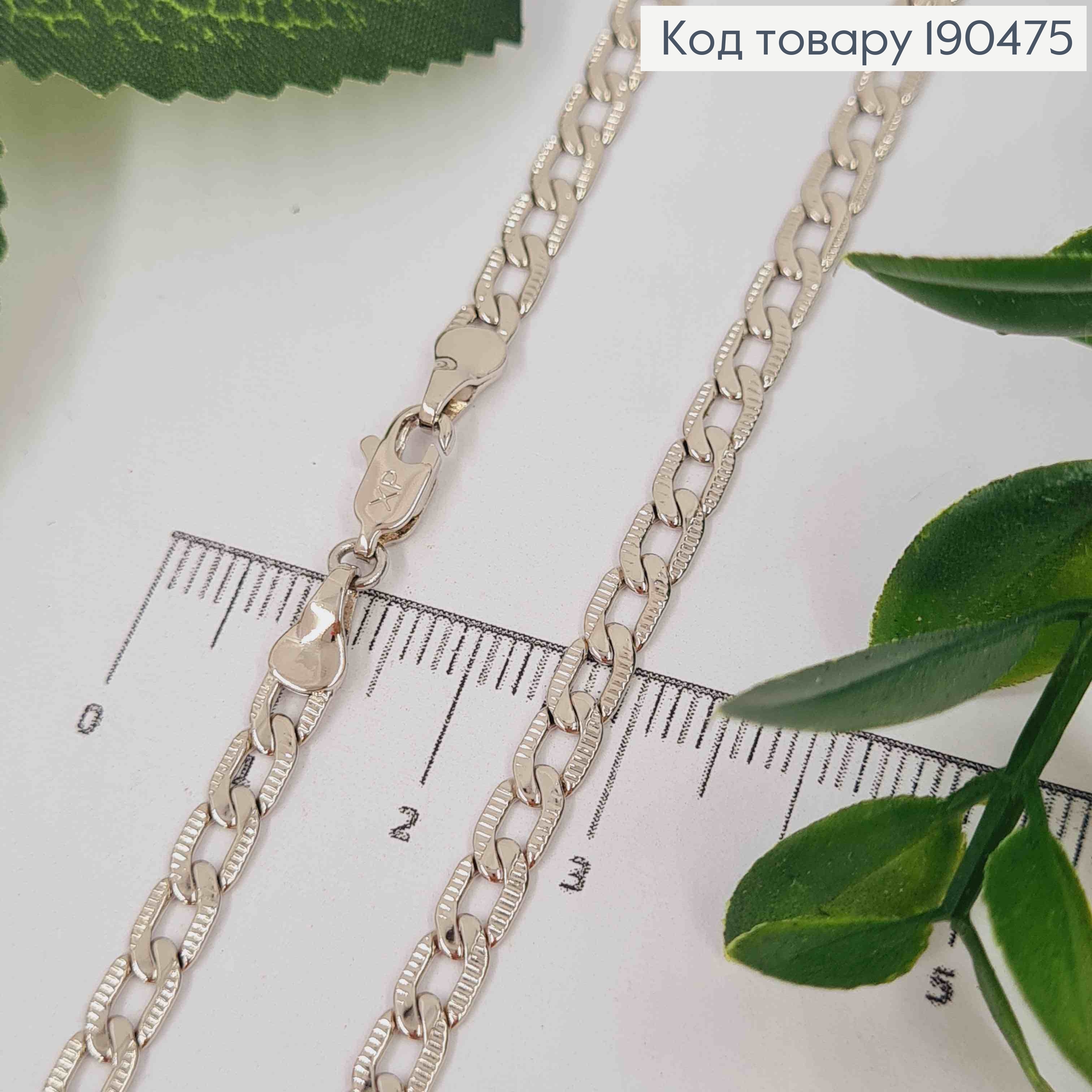 Цепочка родованная, ПАНЦИРНОЕ плетение с тиснением по краям, длина 60см, ширина 4мм, Xuping