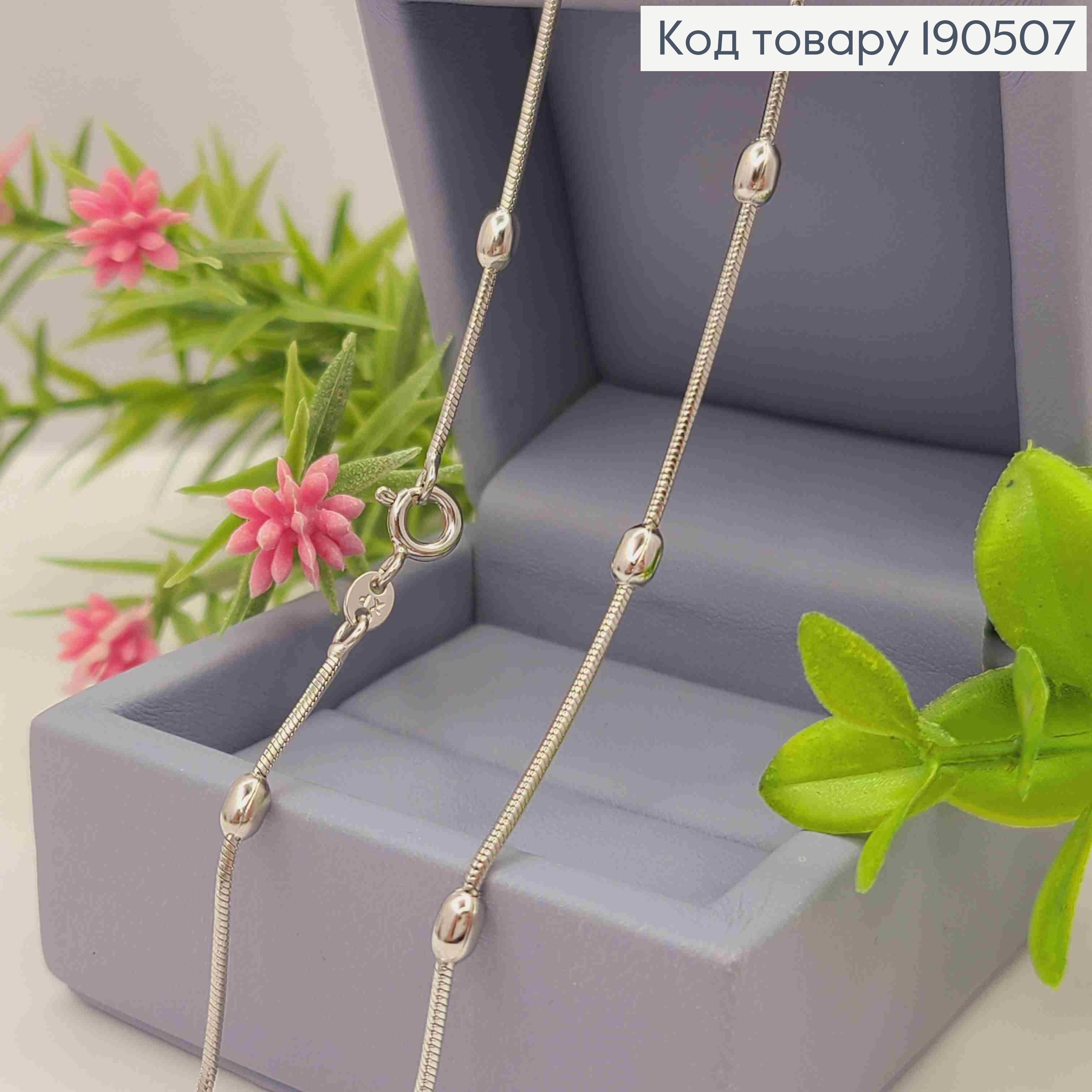 Цепочка родованная плетение СНЕЙК с овальными шариками, длина 50см, Xuping