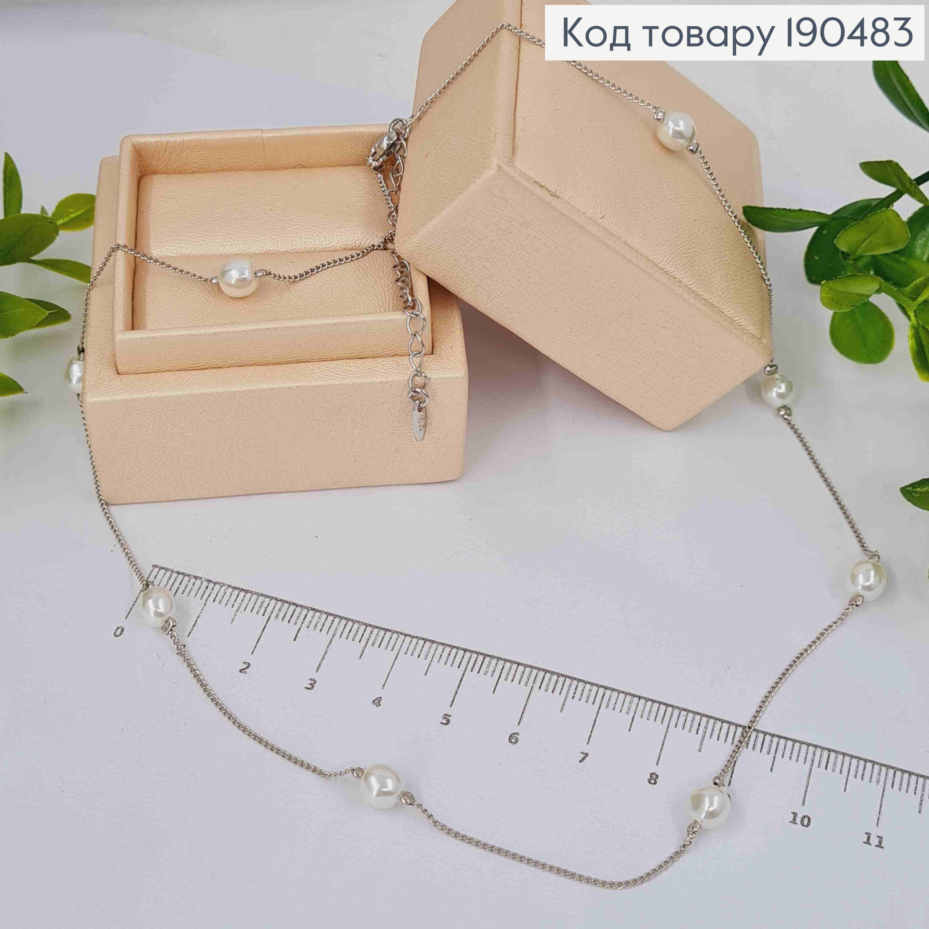Цепочка родованная с бусинками перламутрового цвета, длина 45+5см, Xuping