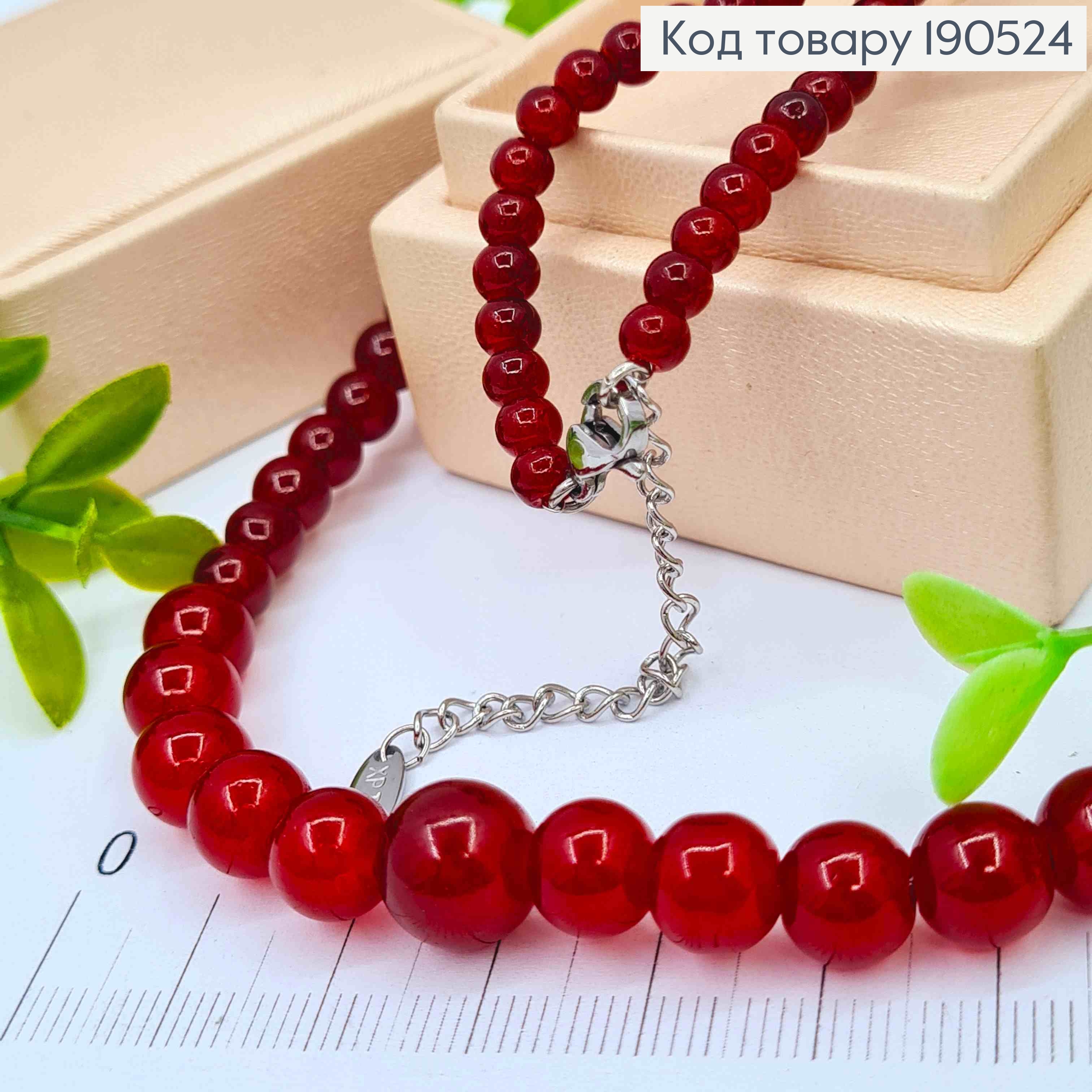 Цепочка родованная с Красными Бусинами разного размера, длина 45+5см, Xuping ТТМ