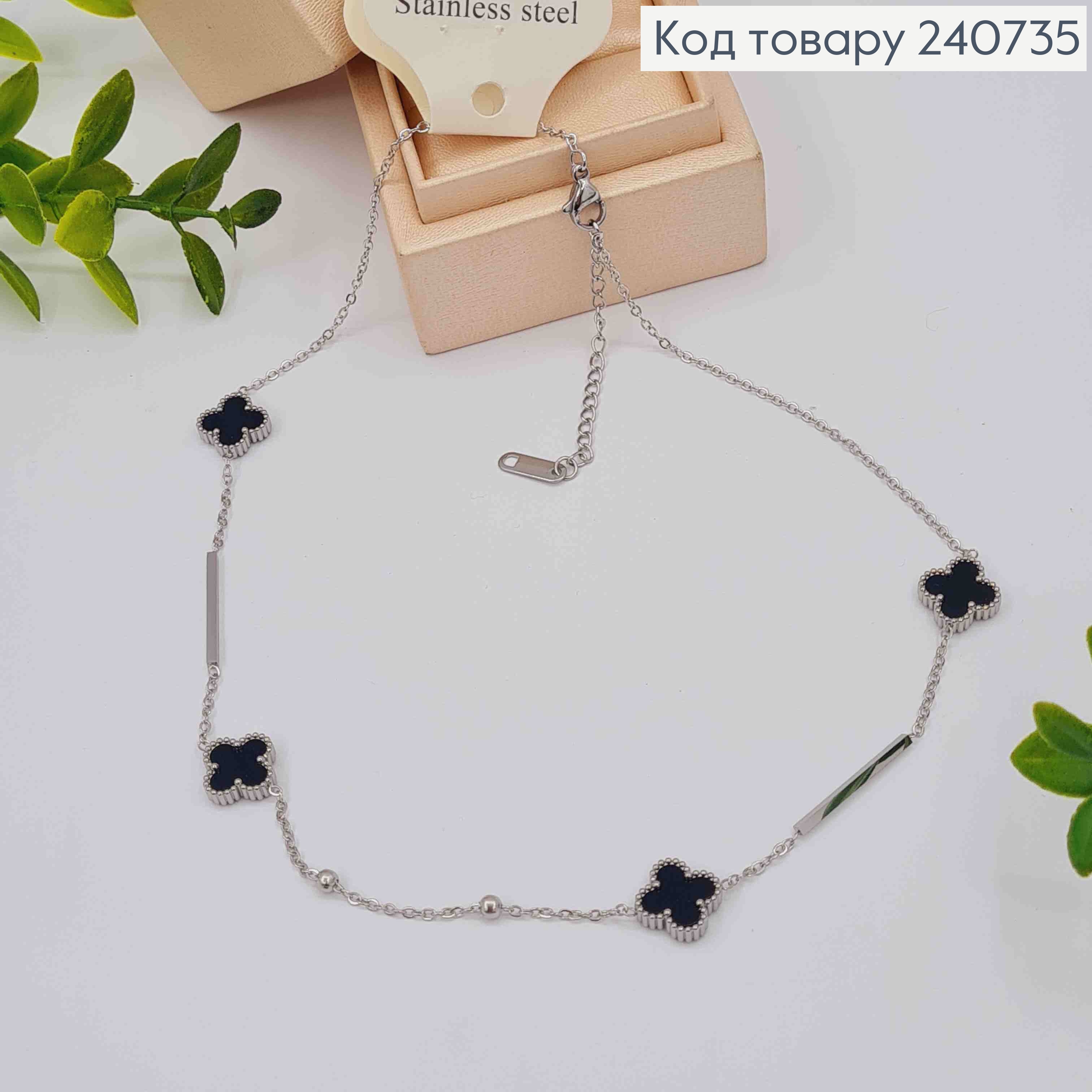 Цепочка серебряного цвета, с подвесками Van Cleef с черной эмалью, 43+5см, сталь Stainless Steel 240760 фото