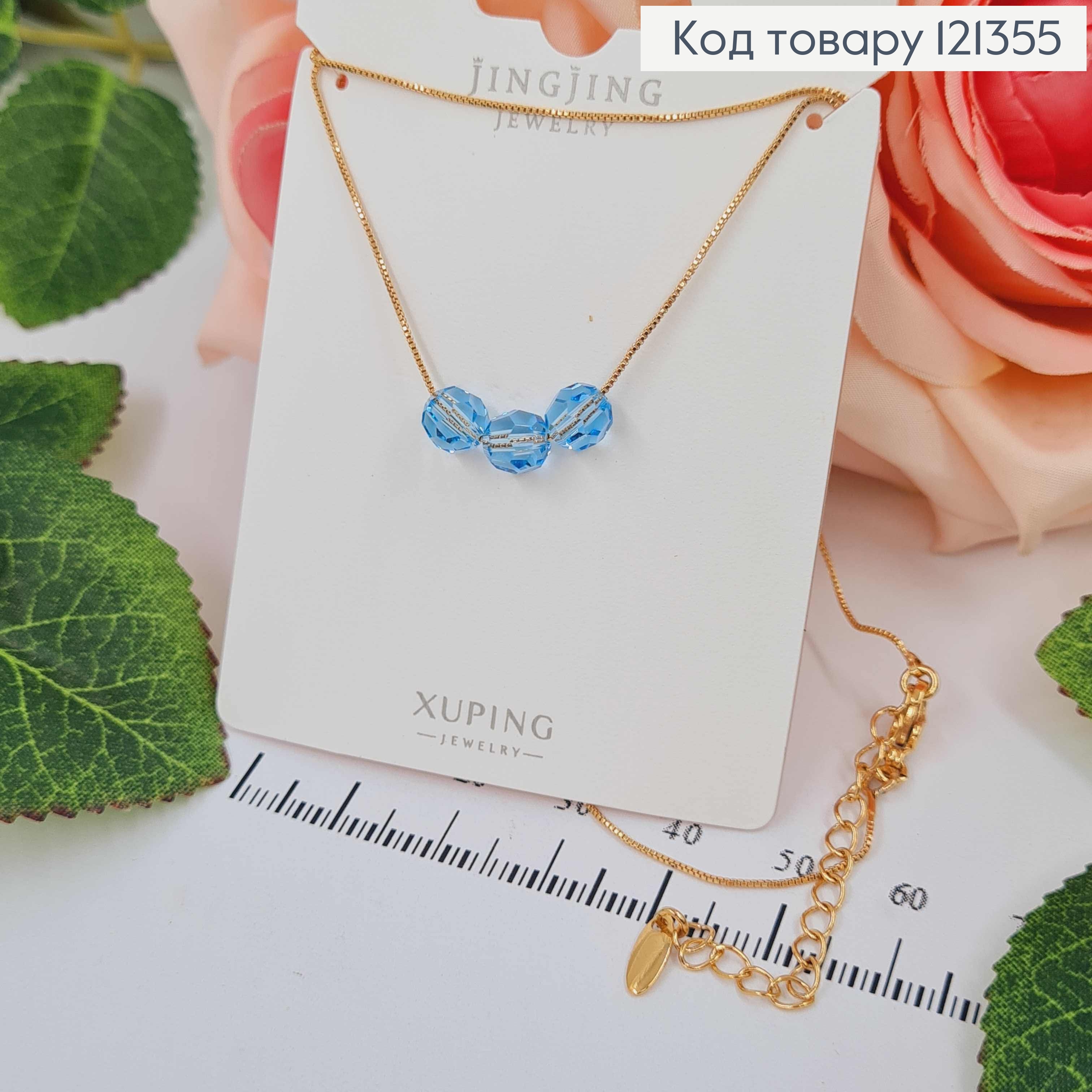 Цепочка с подвесками, тремя шариками Сваровски, голубого цвета, 40+5см, Xuping 18К