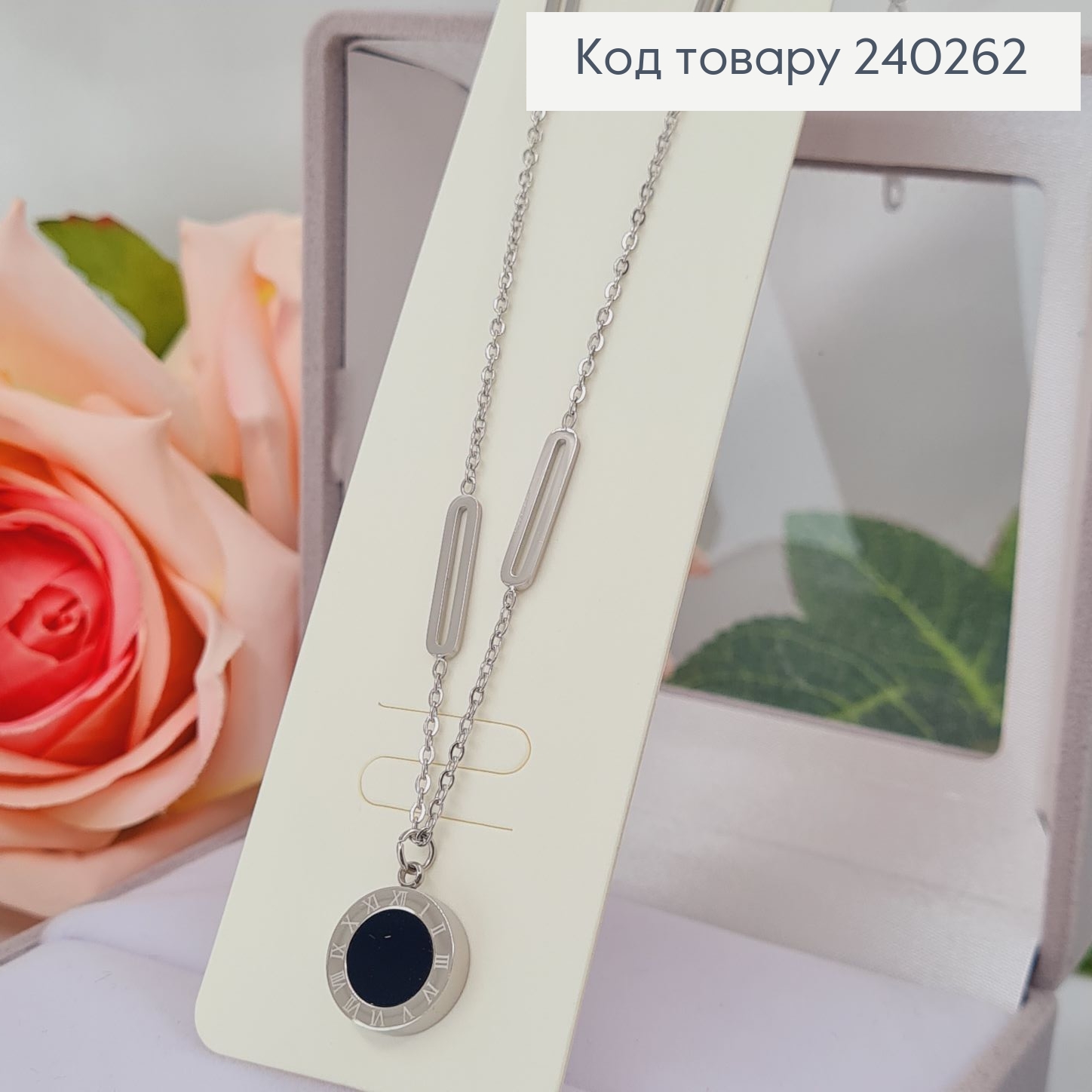 Цепочка с подвеской 40+5 см Римские часы с двустор. ч/б эмалью, цвет серебряный, Stainless Steel