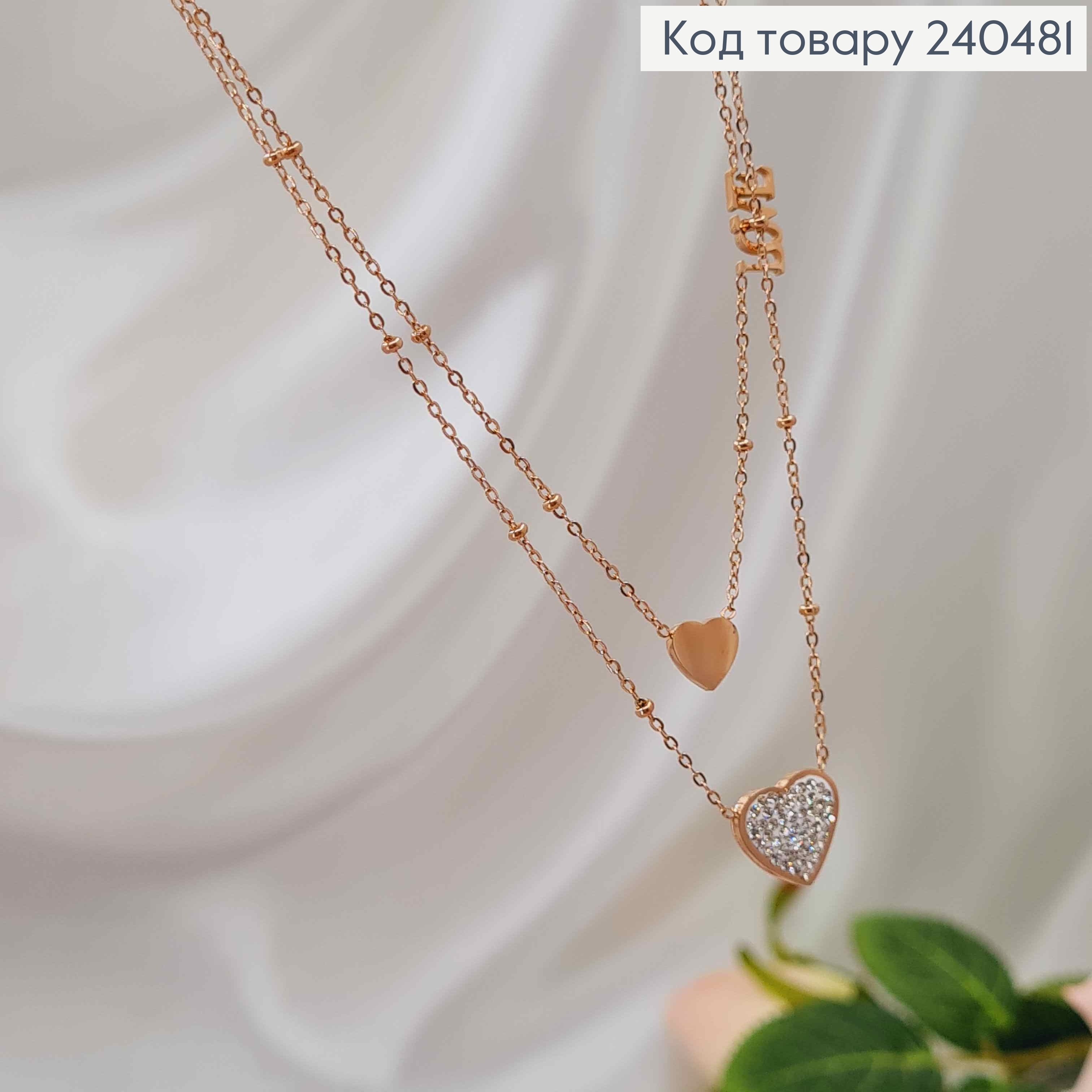 Цепочка двойная, золотого цвета, с подвеской Сердечком с камнями "LOVE", 40+5см, сталь Stainless Steel