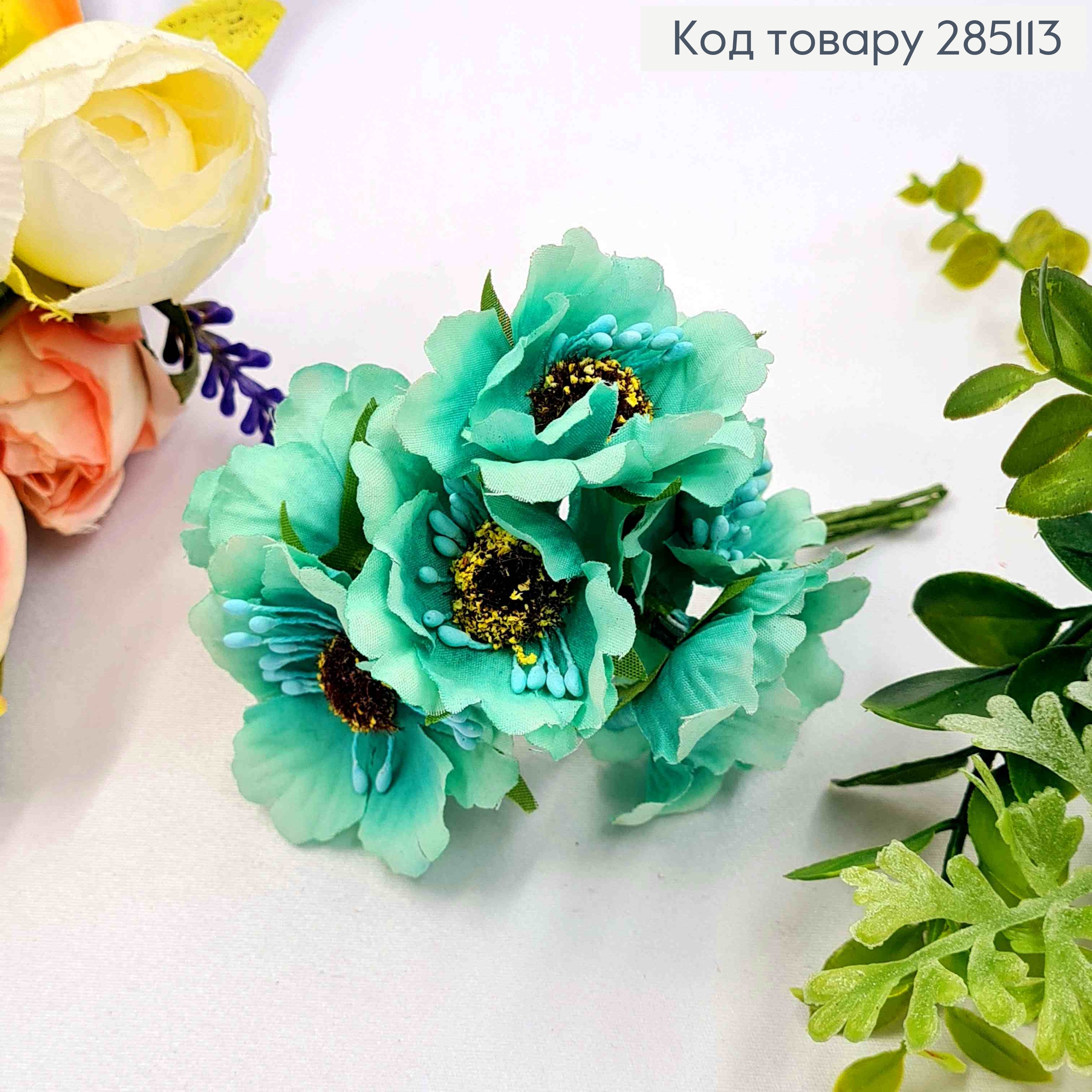 Мак (6шт/пучок) МЯТНЫЙ колір, с тканями (4см) на дротику 8см