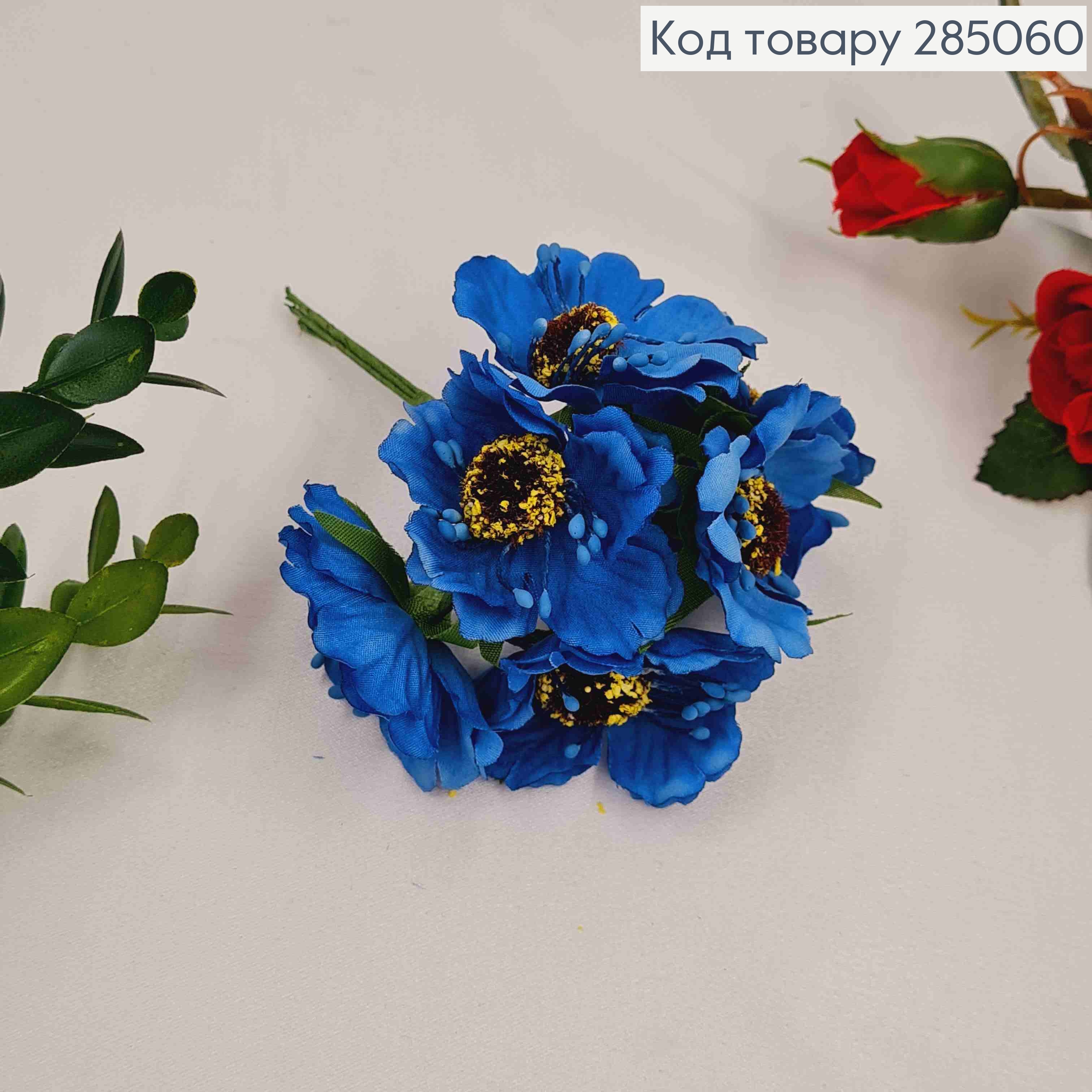 Мак (6шт/пучок) СИНИЙ из ткани (4см) на дротике 8см