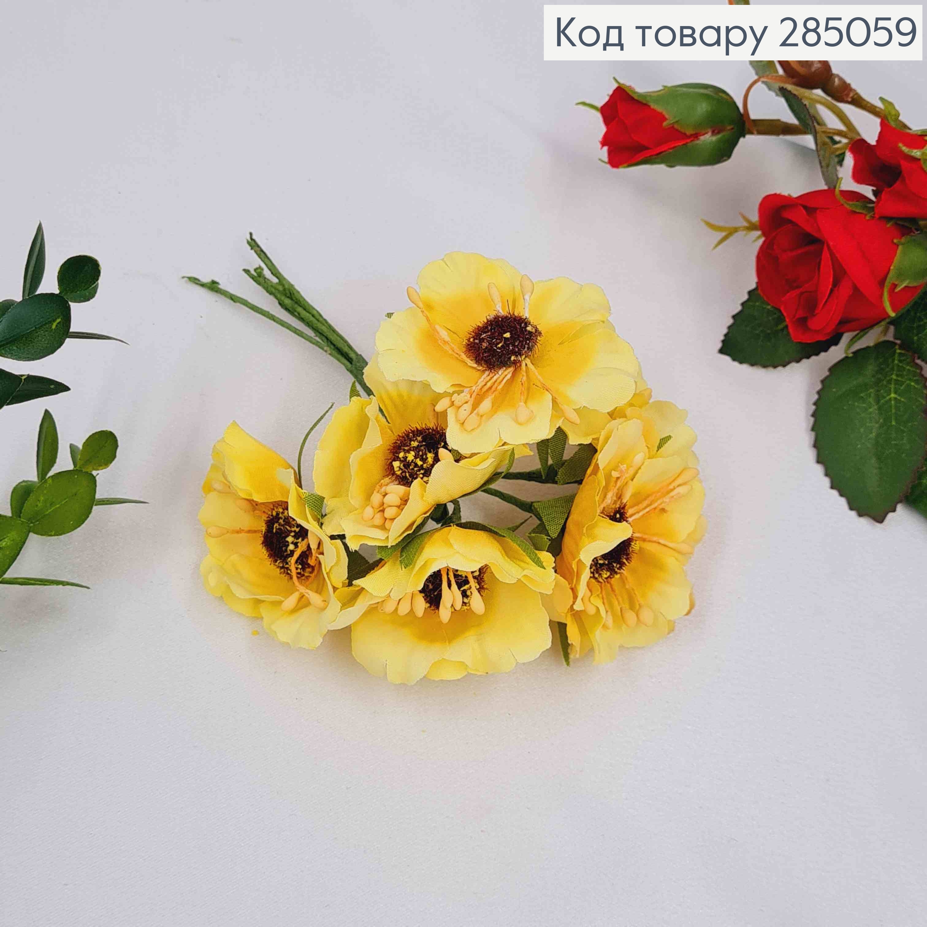 Мак (6шт/пучок)ЖЕЛТЫЙ из ткани (4см) на дротике 8см