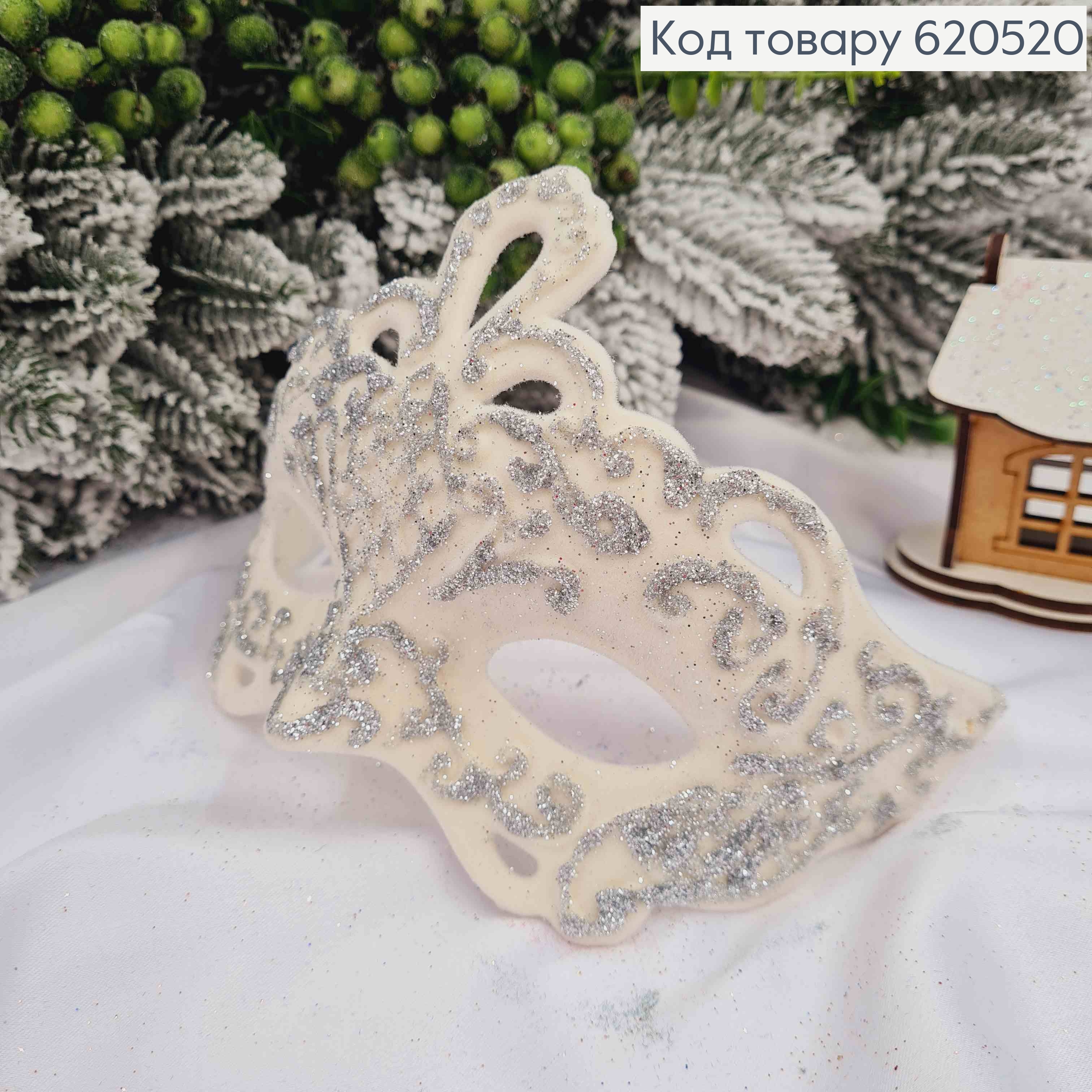 Маска Карнавальная, БЕЛАЯ с Серебряным узором, бархат