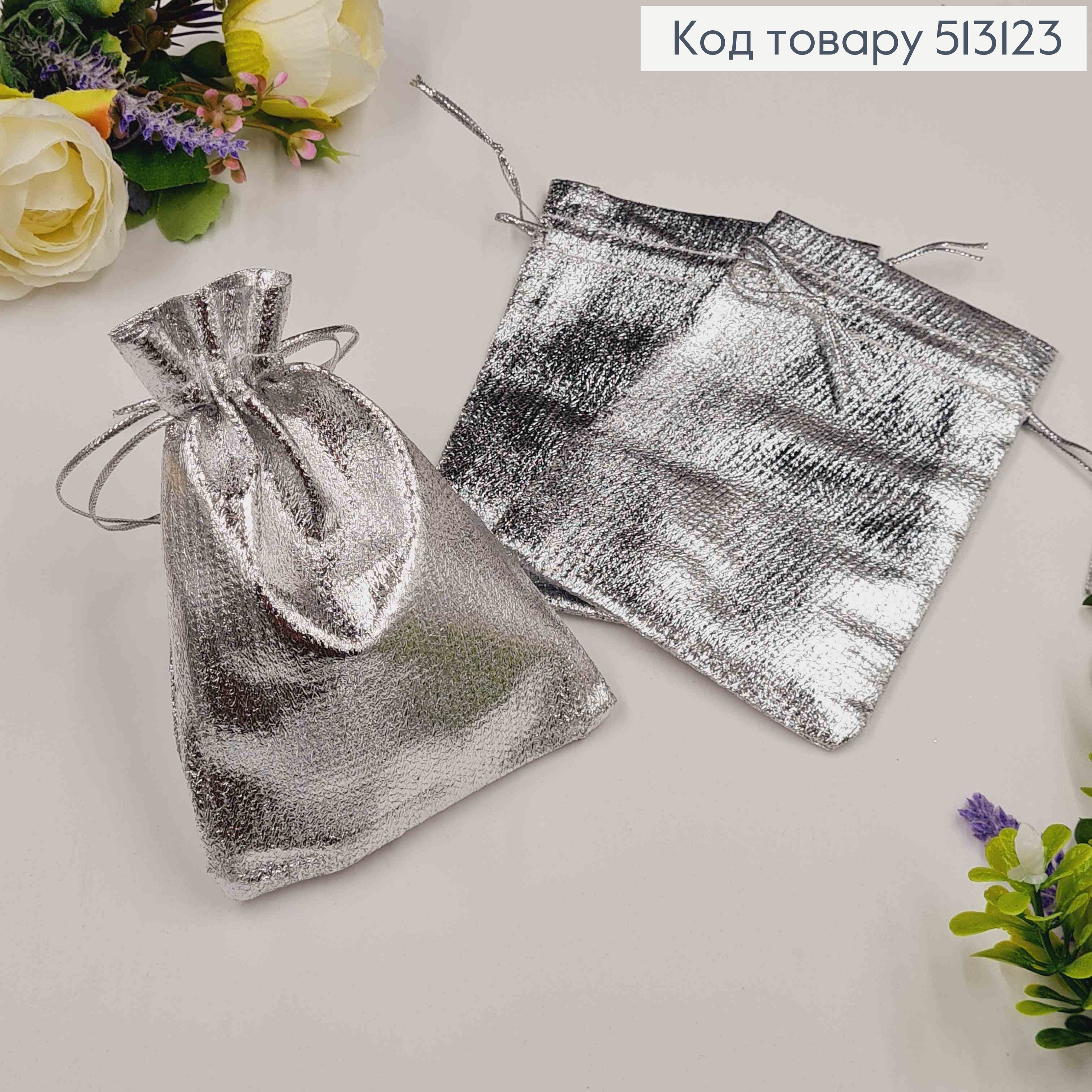 Мешочек на затяжке, блеск серебро, прямоугольный, 11,5*9см