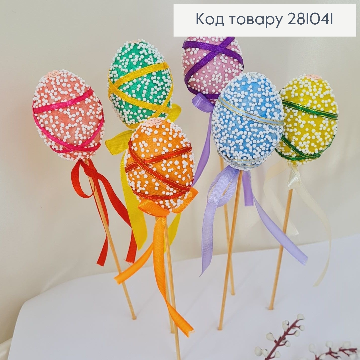 Набір яєць кольорових білий горох з лєнточкой на дерев'яній палочці 6 шт 4,5х6х21 см