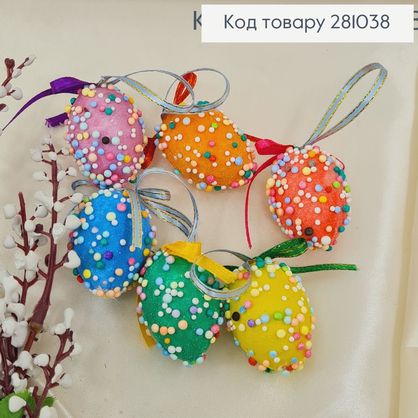 Набор Яиц (6шт/уп), РАЗНОЦВЕТНЫЕ с Пенопластовой крошкой с Бантиком на подвеске, 6*4см 282197 фото