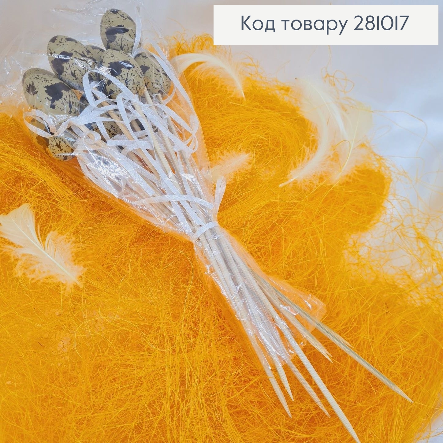 Набор декоративных пастыковых яиц на деревянном палочке 12 шт 4х3 см высота 26 см