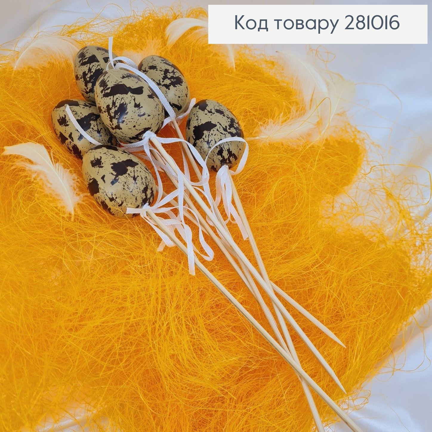 Набор декоративных пастыковых яиц на деревянном палочке 6 шт 4х6 см высота 26 см