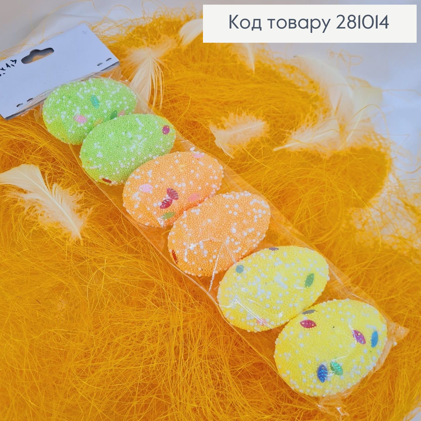 Набор Яиц (6шт/уп), РАЗНОЦВЕТНЫЕ с Пенопластовой крошкой с Бантиком на подвеске, 6*4см 282197 фото