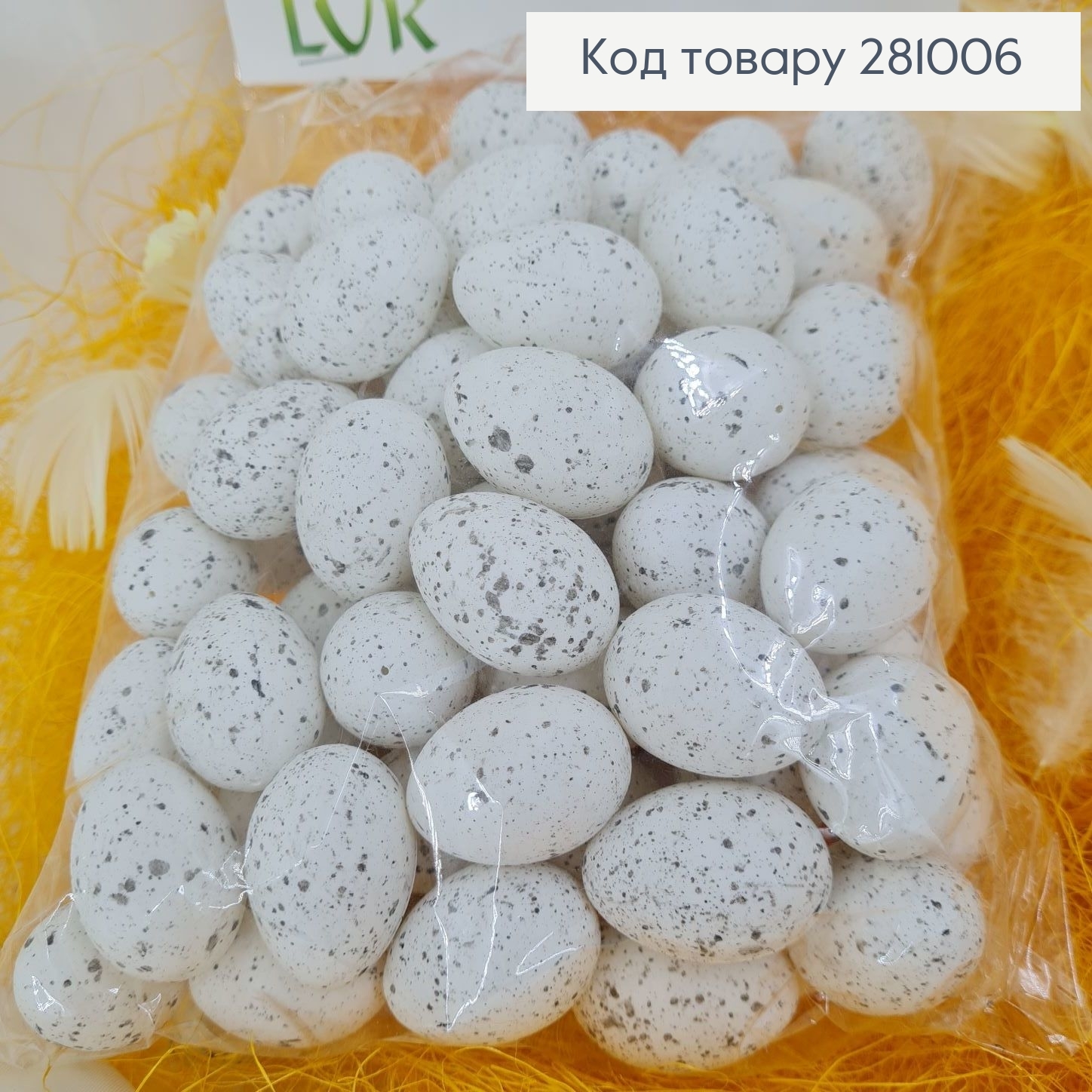 Перепелиные яйца (пластик), на петельке, Белые/Серые в точку, 12шт/уп, 4*2,8см 282210 фото