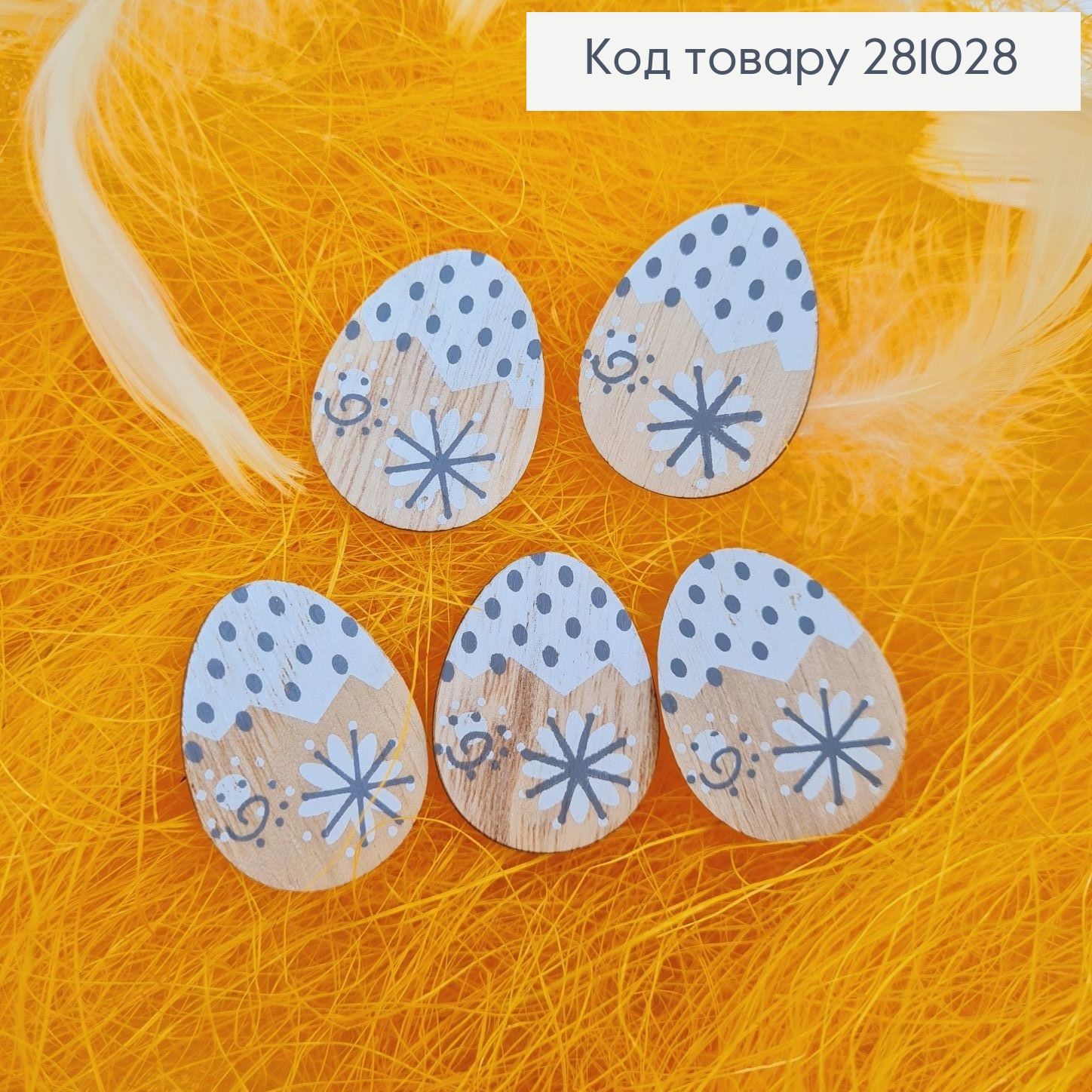 Набор Яиц (3шт/уп), ЖЕЛТЫЕ в Сахаре с Пером на подвеске, 6,2*4,7см 282201 фото