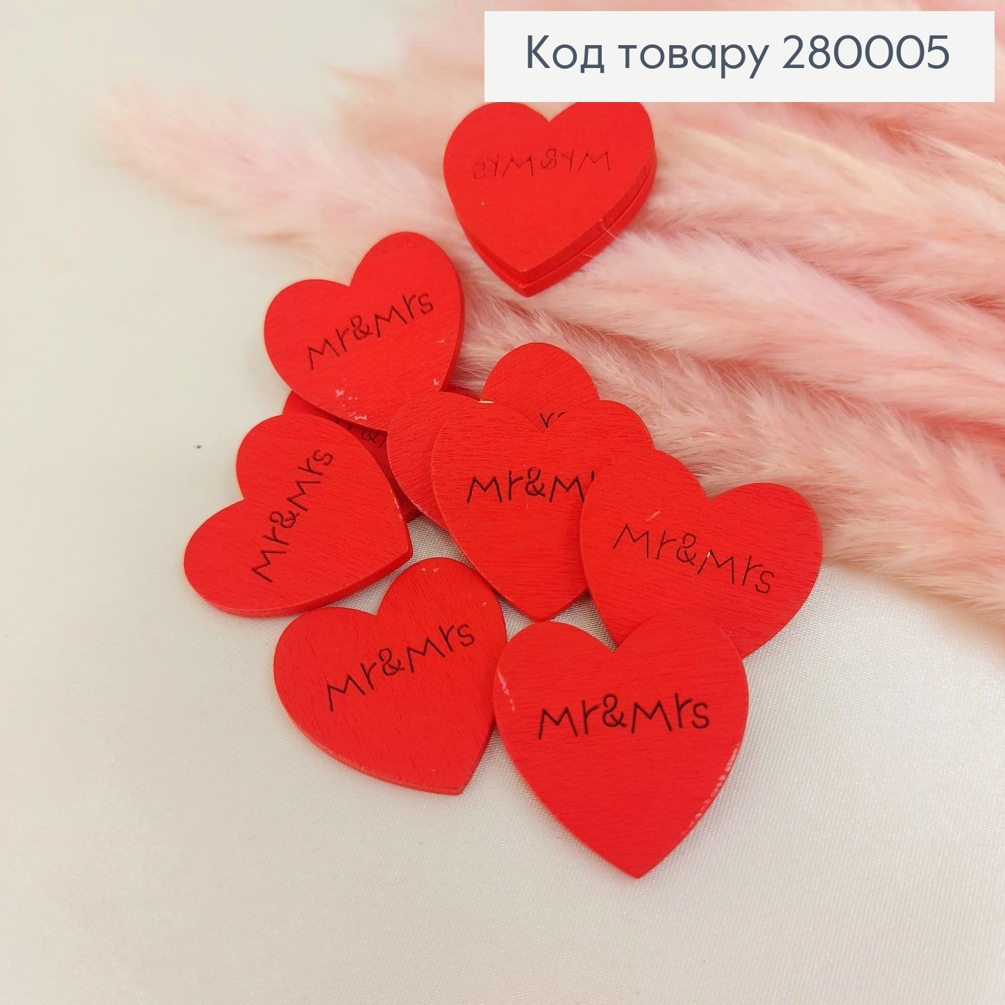 Набор деревянных красных сердечек 10 шт Mr&Mrs 3х2,5 см