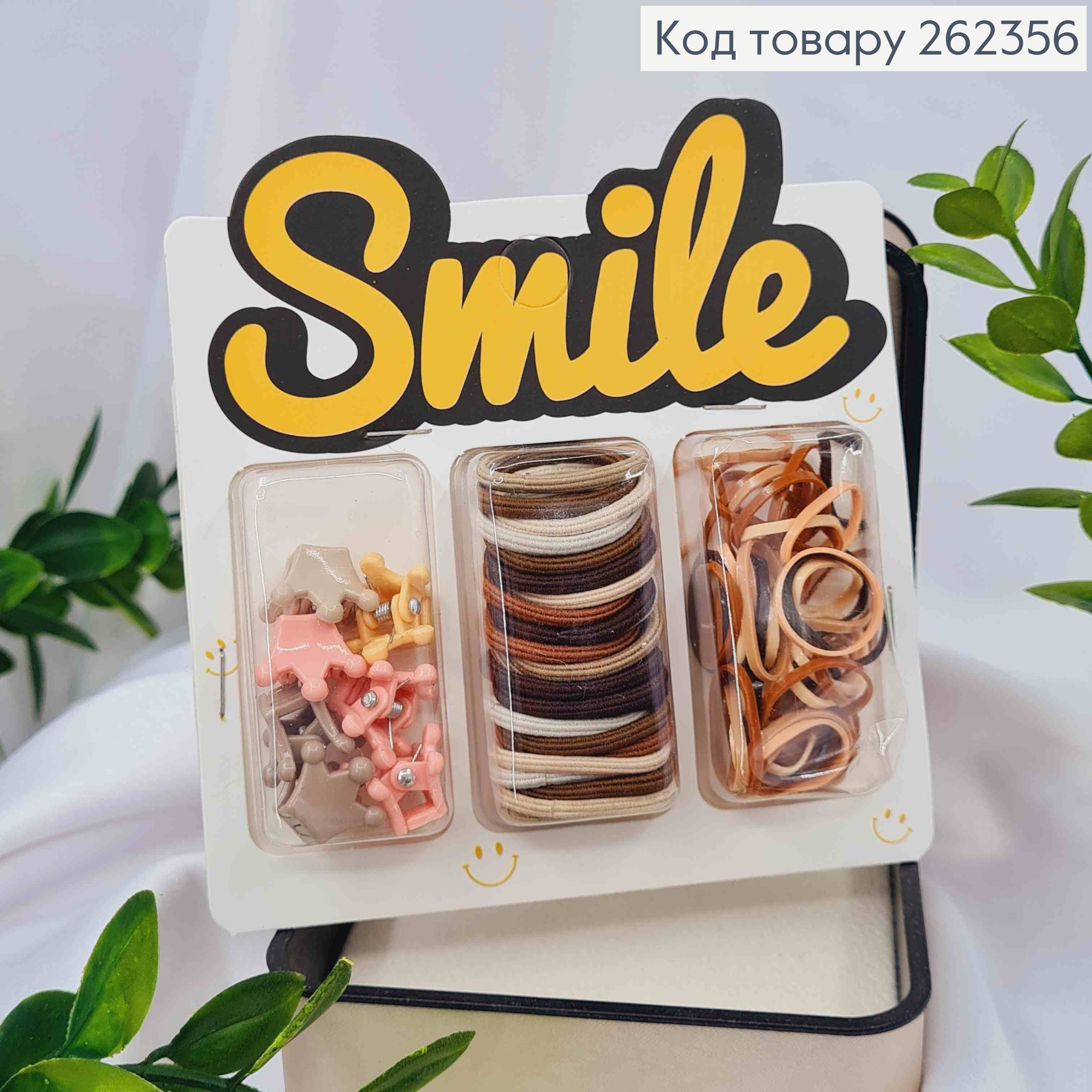 Набор детских: резинки Шнурок/Силиконовые + Крабики "Корона", Пастельных цветов