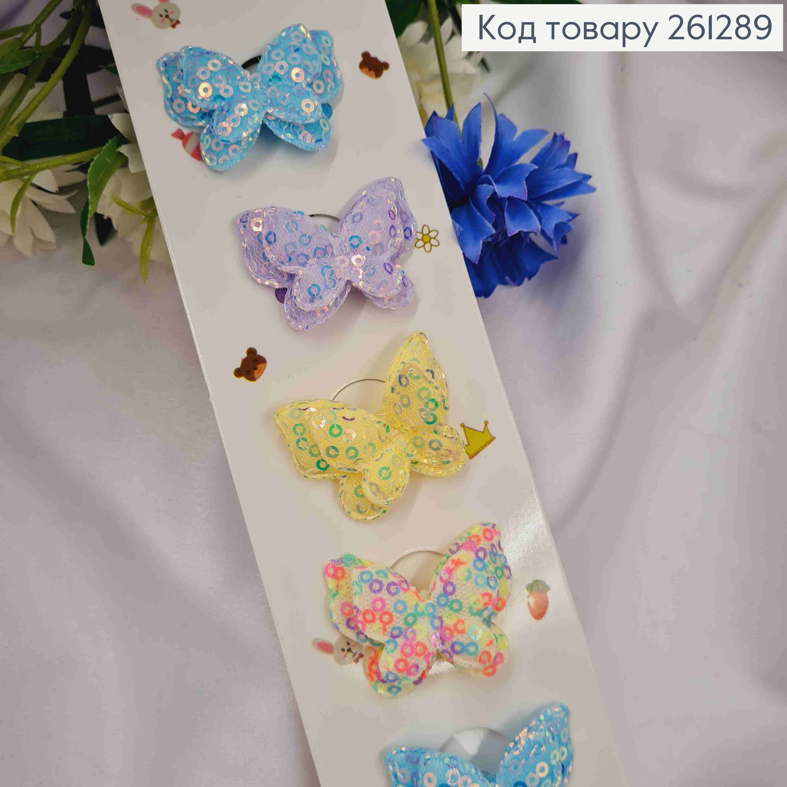 Набор резинок (20шт) "Бабочка" с жемчужиной и пайетками, пастельные цвета, резинка3см,бабочка3,5*3см 261384 фото