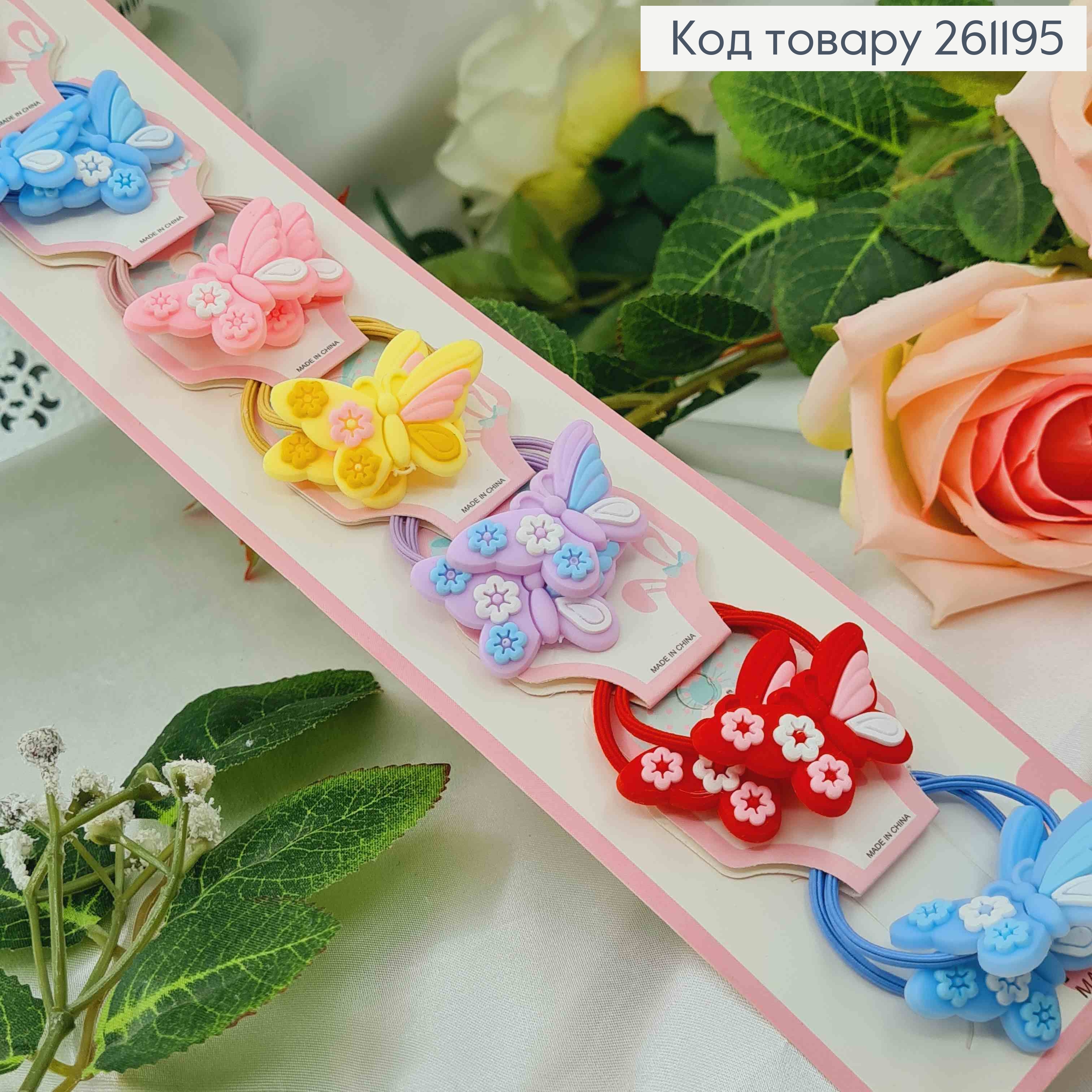 Набор резинок (20шт), "Бабочки" с жемчужинами, пастельные цвета, резинка 3см, бабочки 4*3см. 261382 фото