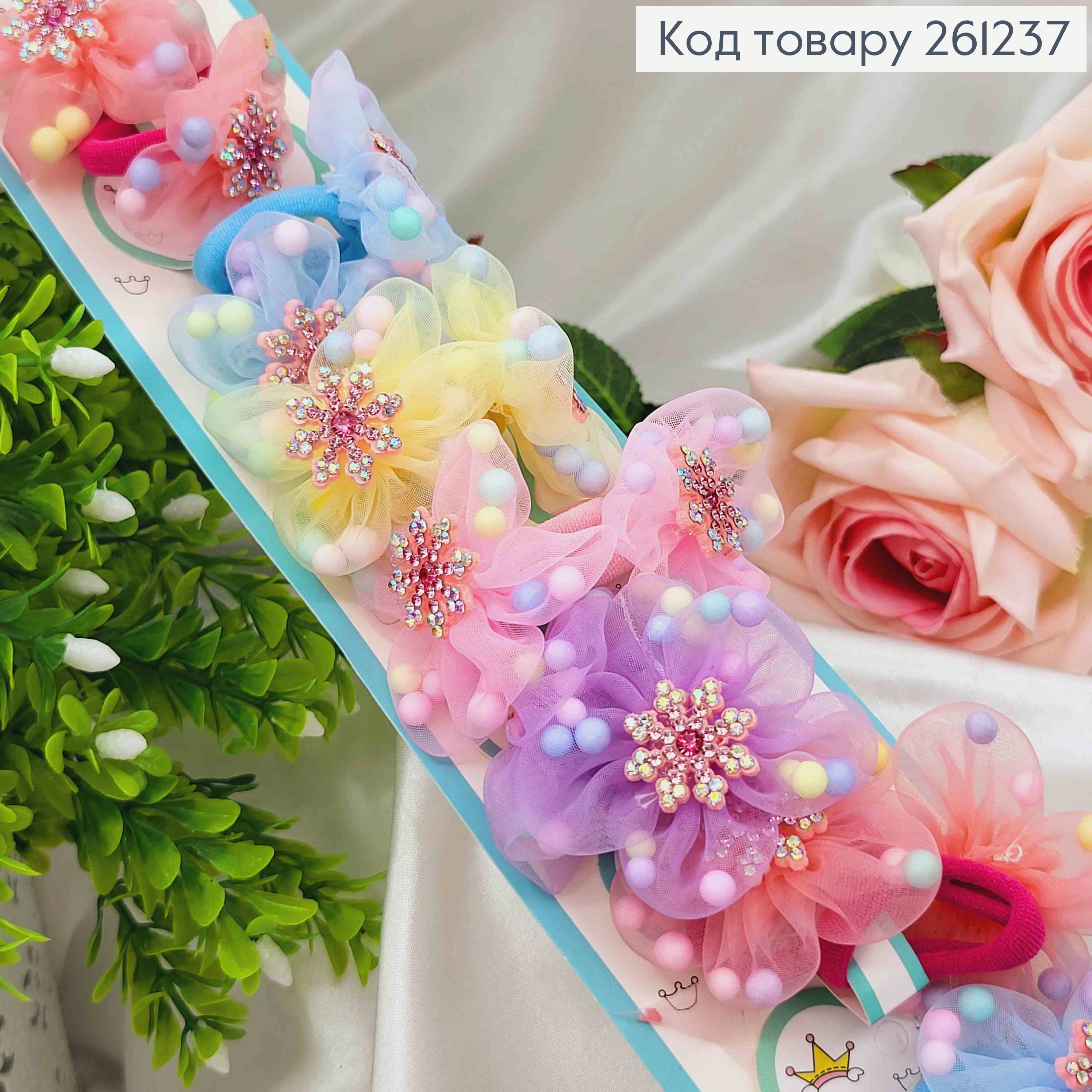 Набор детских резинок, фатиновые цветочки с шариками внутри с цветочками в камнях, 20шт/наб.
