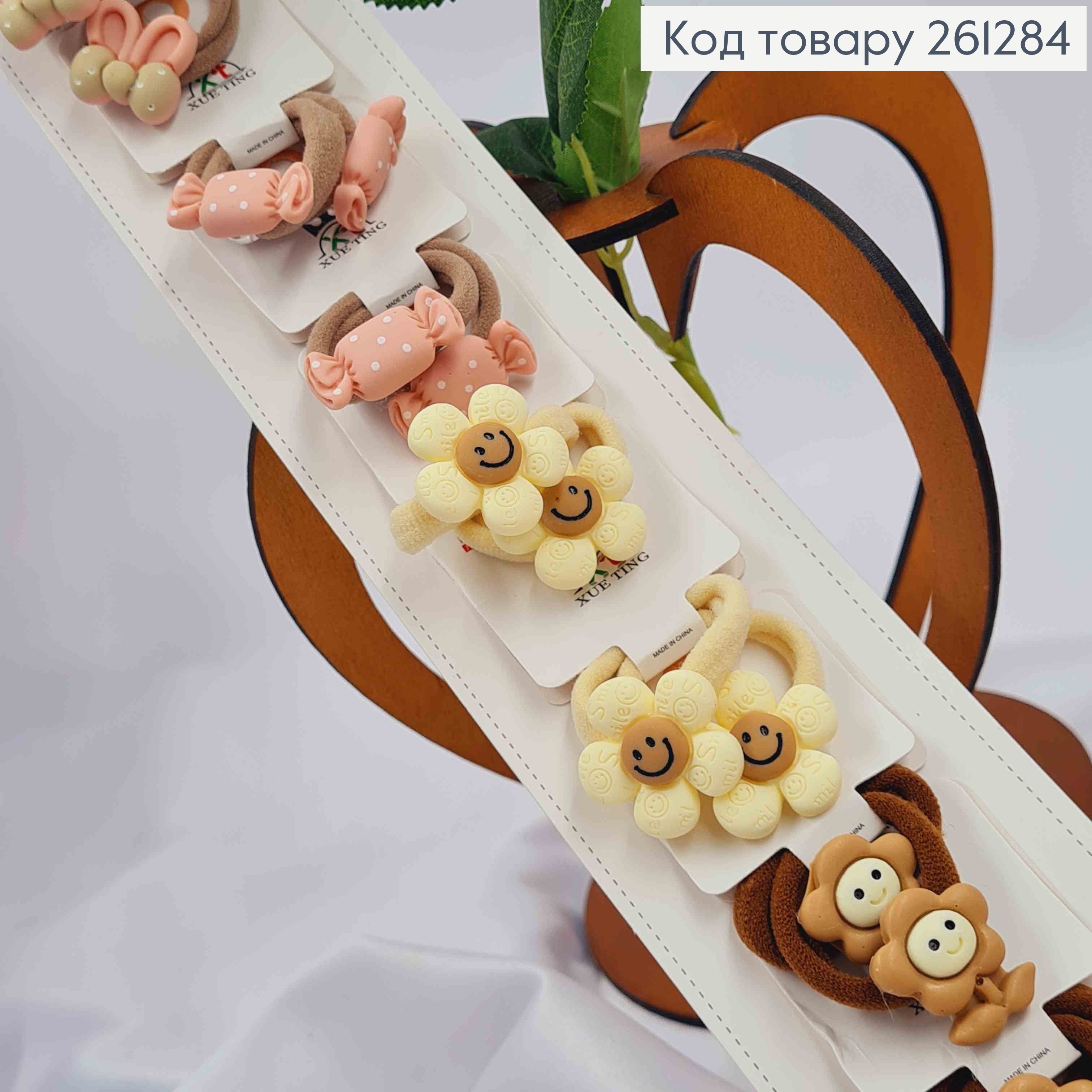 Набор детских резинок, микрофибра (20шт/уп), цветов пастельных, Цветы-Конфеты-Сердце