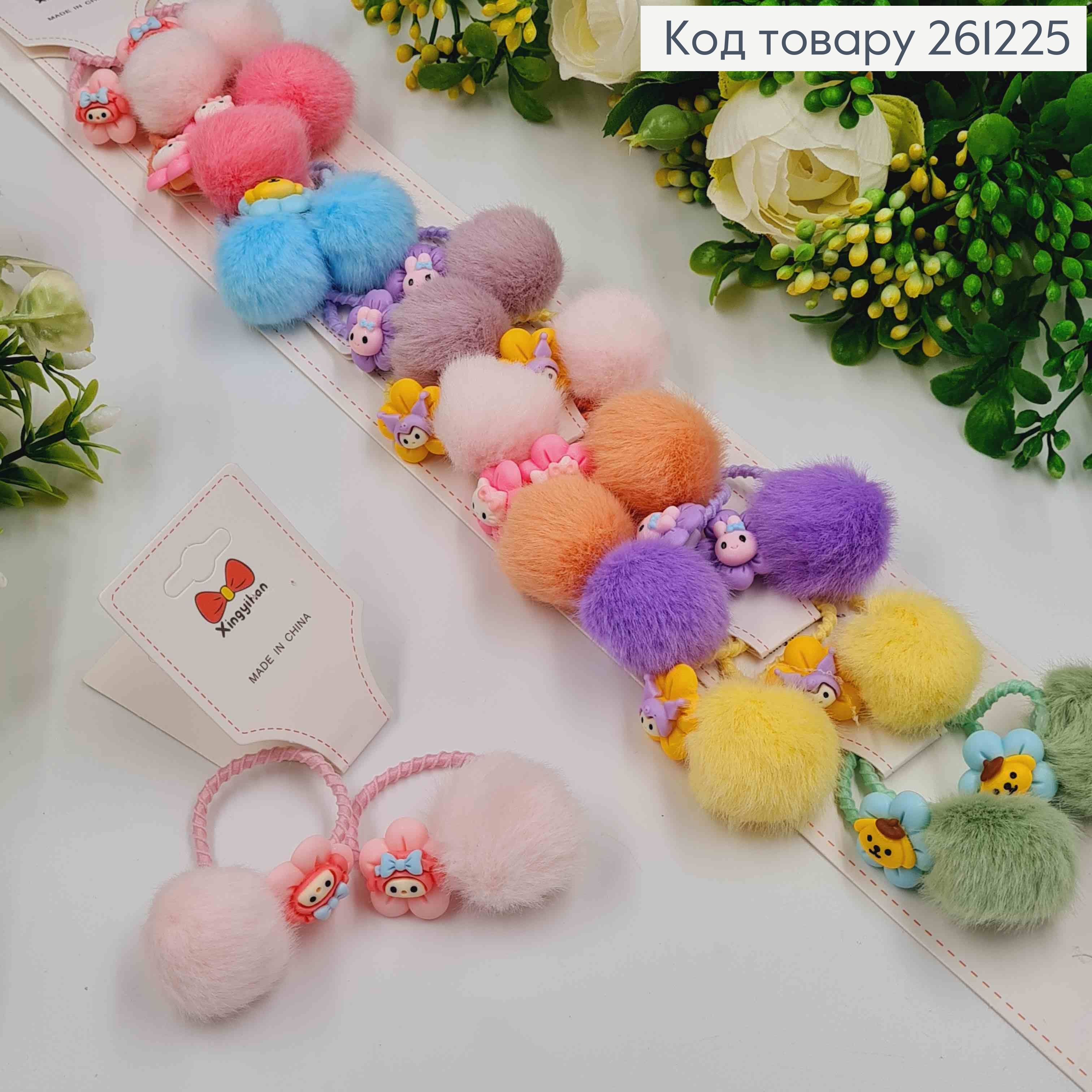 Набор резинок (20шт), "Цветок" с Пушистиком, Пастельные цвета, резинка 3,5см, цветок 2,8см 261380 фото
