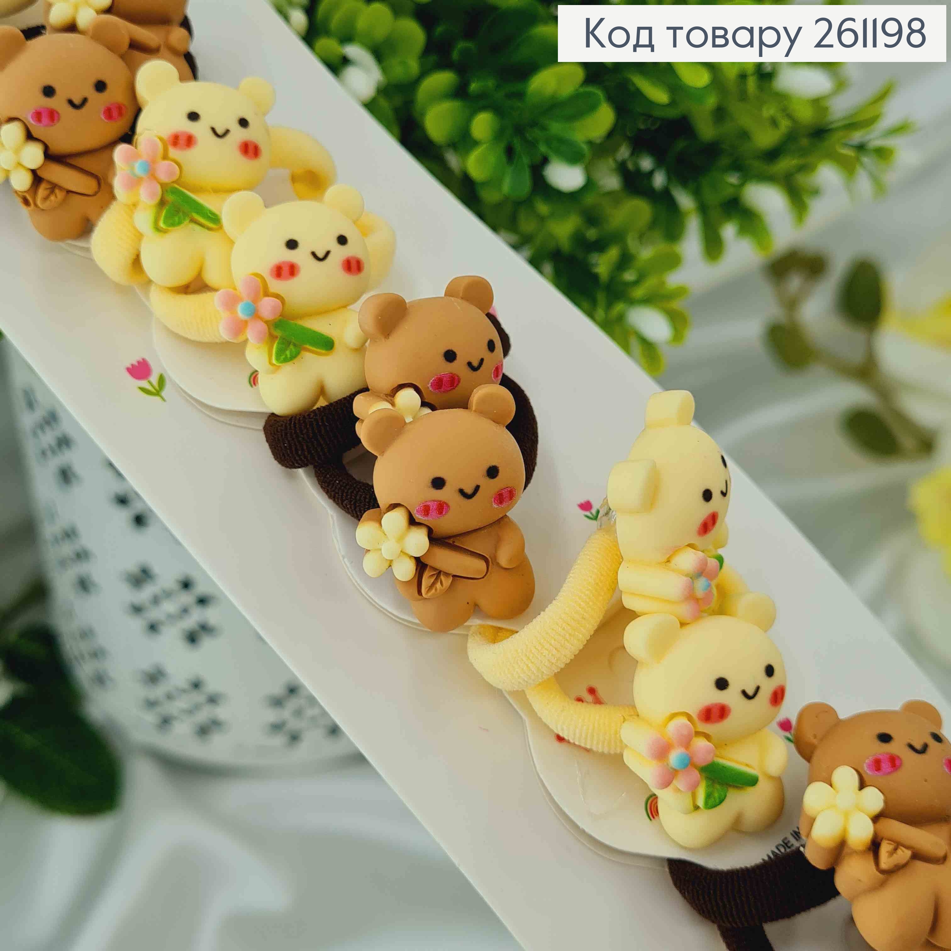 Набор детских резинок "Мишка с цветами" в коричневых тонах, 20 шт/наб.