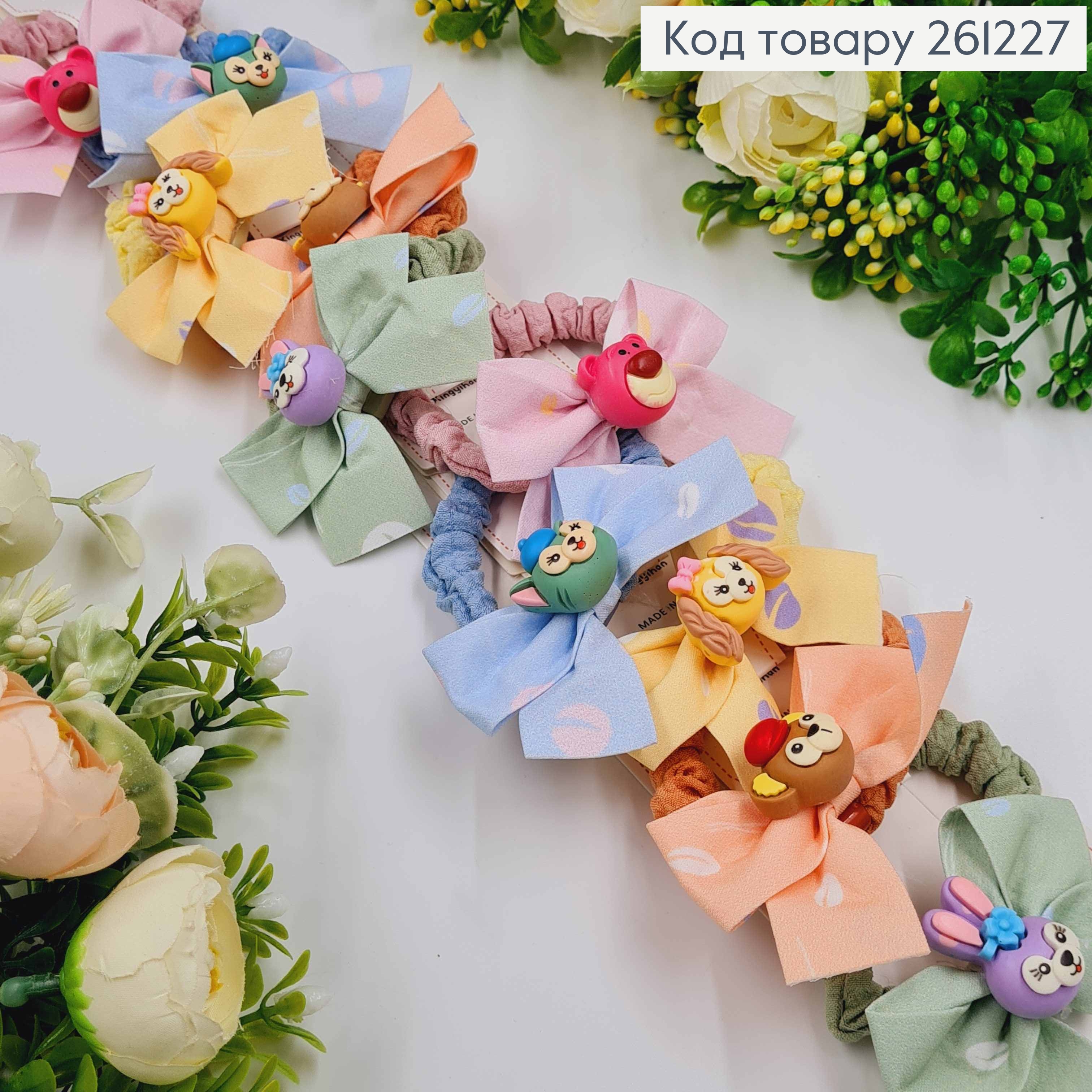 Набор резинок (20шт) "Животные" с бантиком, Пастельные цвета, резинка 3см, животные 2,5см 261387 фото